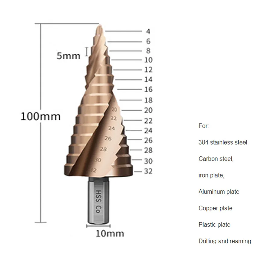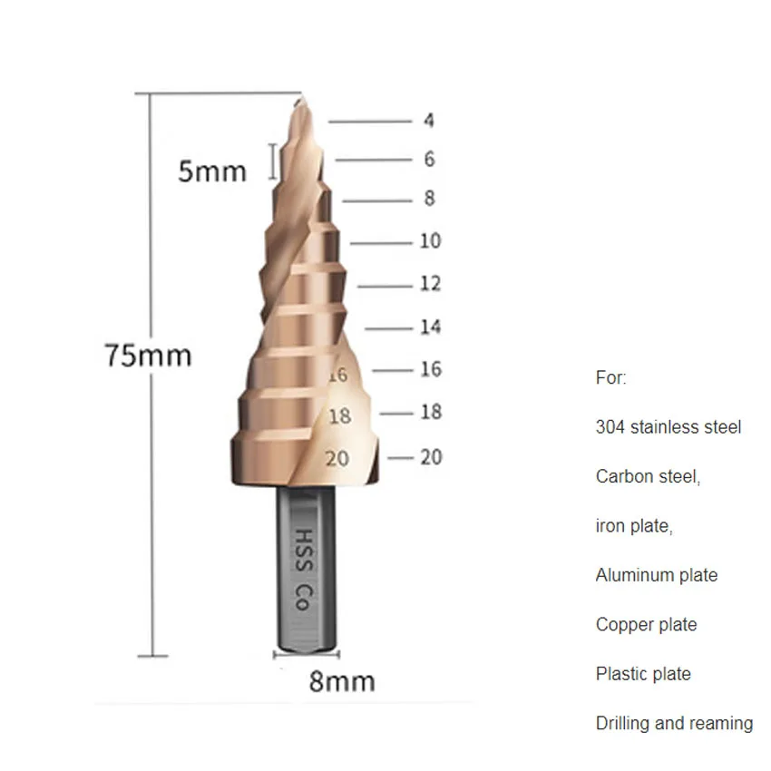 Este es un taladro escalonado de acero de alta velocidad HSS/broca Pagoda, que está hecho de acero HSS de alta calidad, y con el