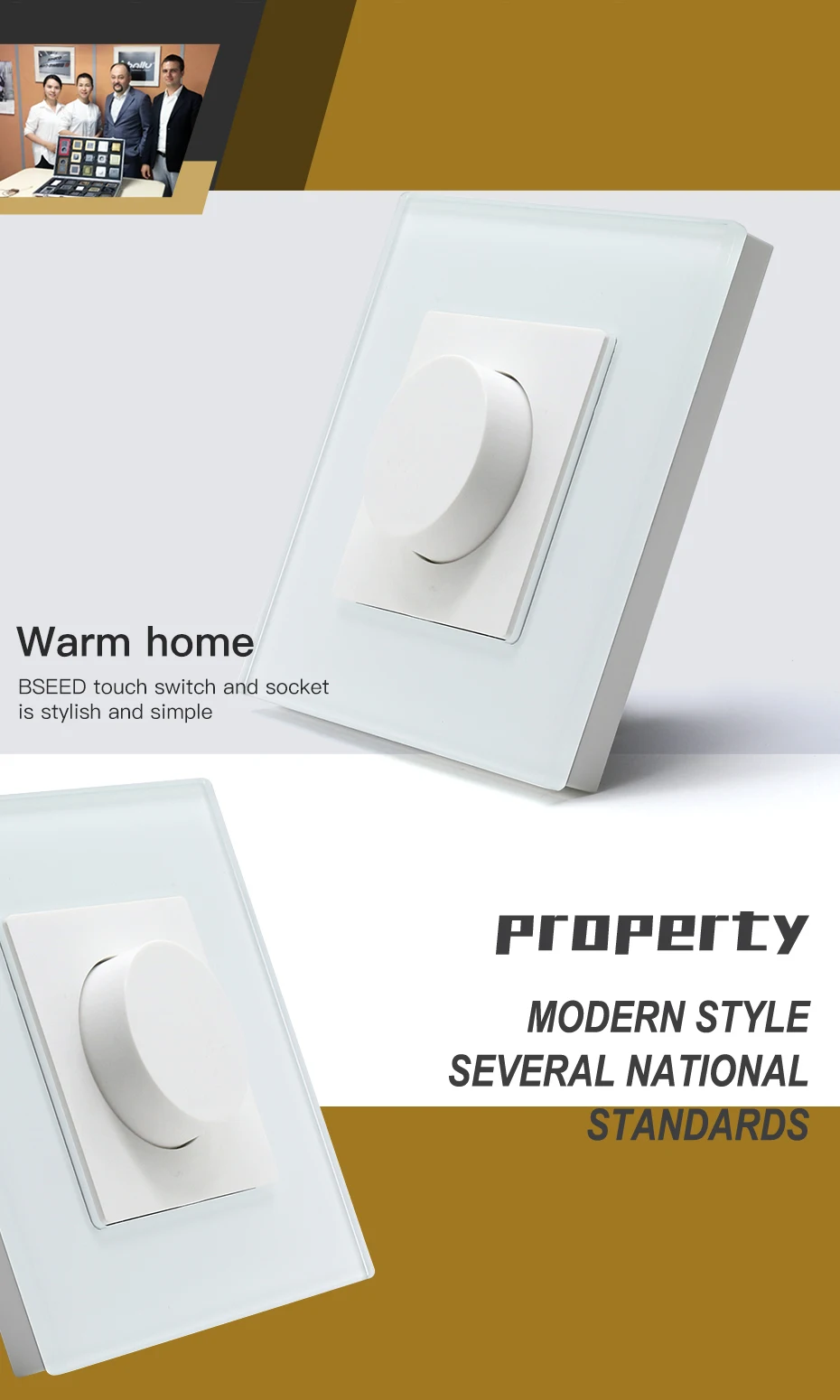 BSEED-Interruptor de atenuación de pared, perilla giratoria mecánica, interruptor de luz, interruptor LED regulable, panel de cristal, estándar de la UE, 86x86mmCaracterísticas:*Nuestro regulador de intensidad mecánico es un interruptor giratorio y no se puede presionar.1.Interruptor de perilla2.Los colores populares están disponibles: negro, blanco, dorado.3.Resistente al agua y al rayado.Protección contra descargas eléctricas.4.Diferentes pruebas de calidad durante la producción, para garantizar que cada interruptor funcione bien antes de ser entregado a los clientes.5.Aspecto elegante, muy adecuado para muchos estilos de decoración modernos.Se puede aplicar a salón, dormitorio, pasillo, cocina, baño, oficina, etc.Introducción del producto:Tamaño: 86×86×35mm