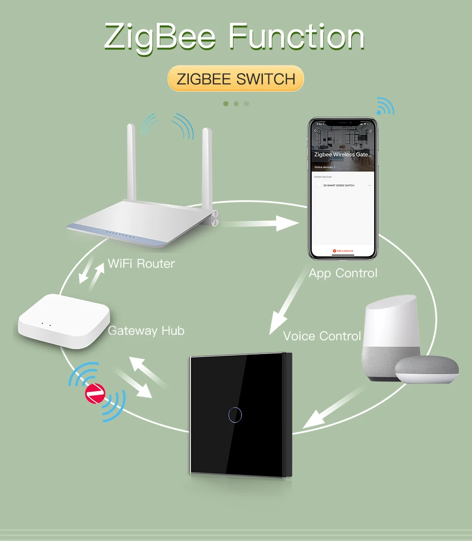 Asociación de control múltiple: Zigbee los interruptores tienen 1/2/3/4 vías y pueden controlar una luz desde cuatro lugares diferentes (el máximo es de 4 vías).