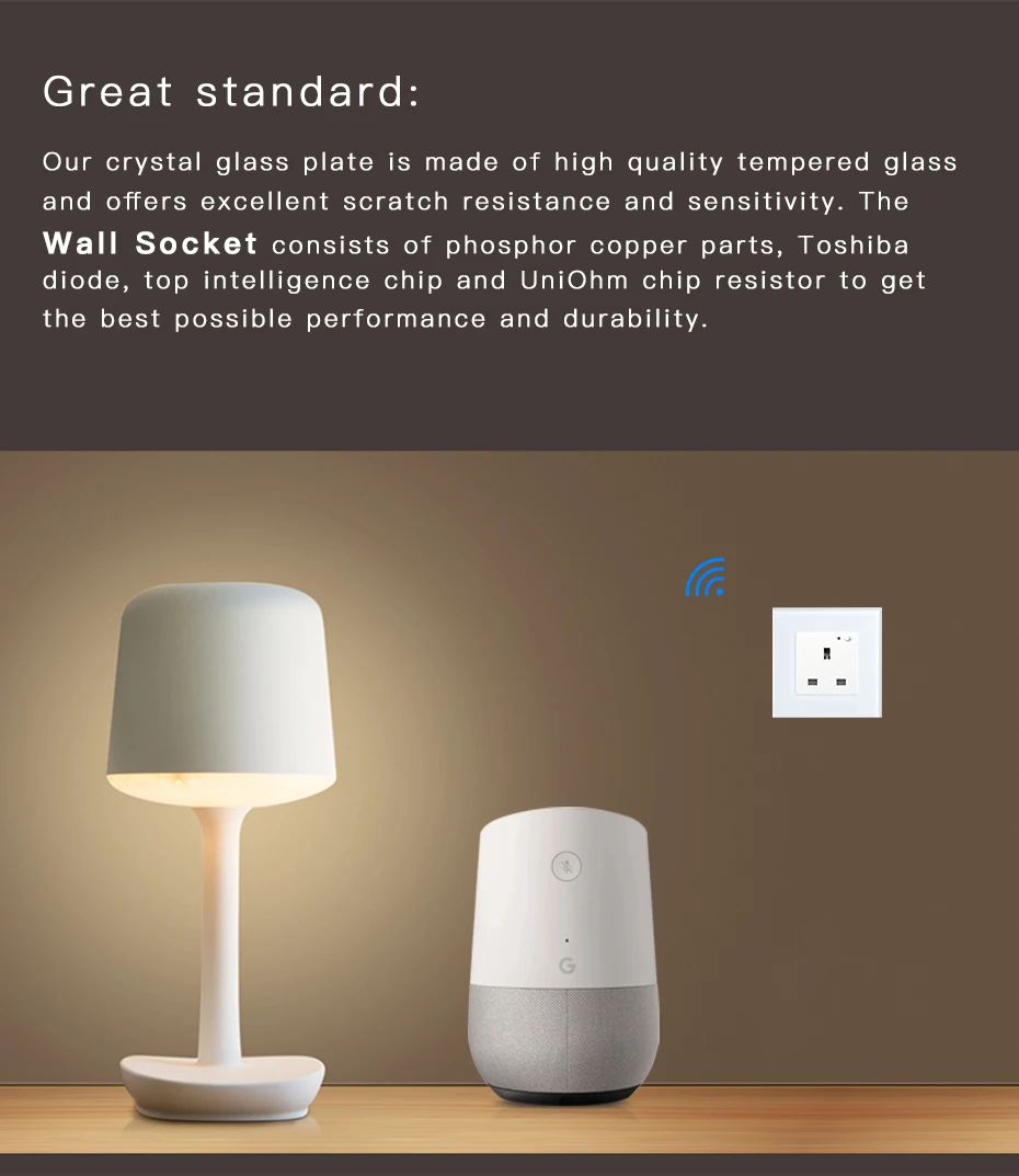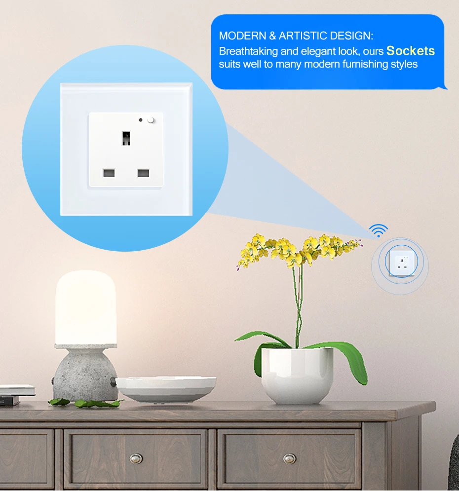 2.Our Wifi home socket and switch are Fireproof and Waterproof. Protection Against Electric Shock for Your Family.