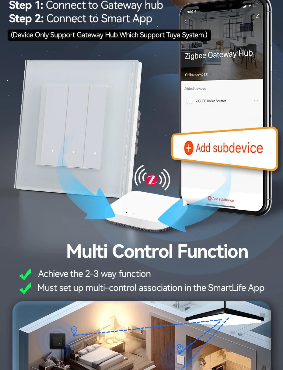 El interruptor Zigbee se conecta a la aplicación debe a través del concentrador de puerta de enlace zigbee, asegúrese de tenerlo antes de comprarlo.