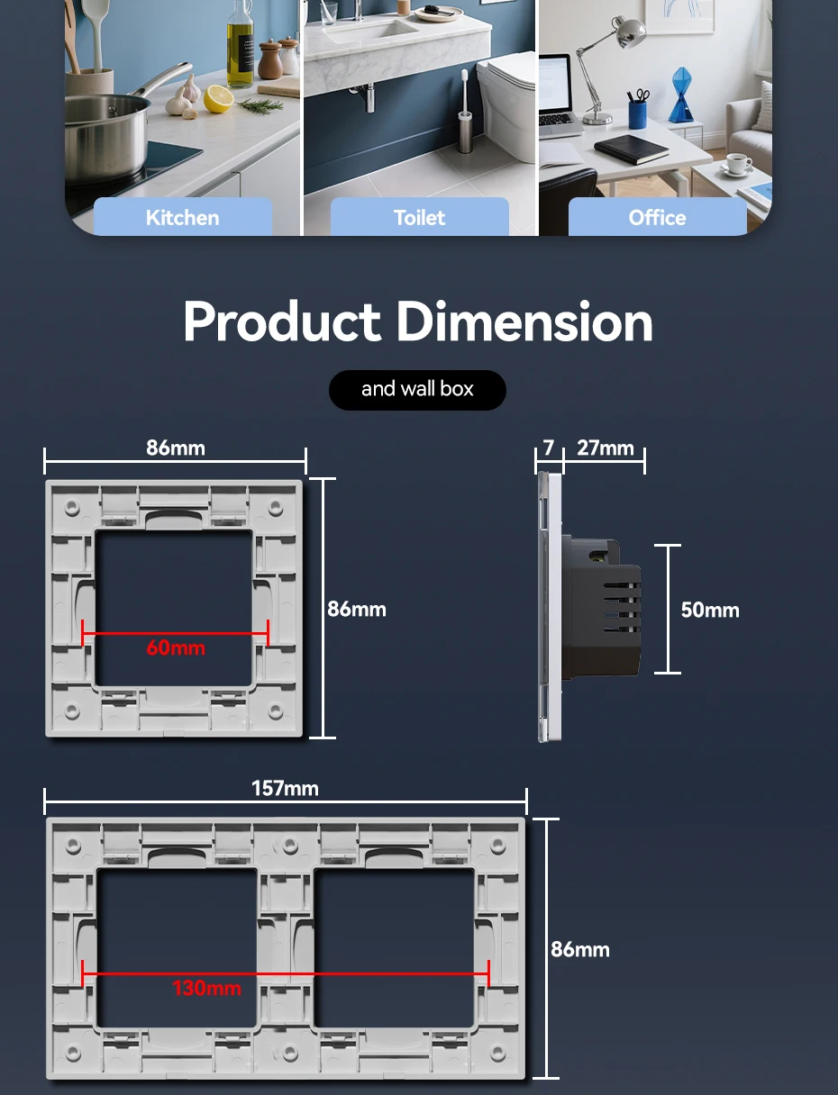 El producto en sí está generalmente bien hecho, con marcos de vidrio (4 botones), pero había una característica desagradable que esperaba, y ahora no está claro qué hacer con ella. Es un misterio por qué hacer reglas con diferentes tamaños que visualmente no se distinguen a primera vista. ¡No se puede instalar en un marco con otros interruptores y enchufes BSEED! Las dimensiones internas del marco son más grandes que las estándar de BSEED, pero las dimensiones externas son las mismas. El grosor de este marco es menor. Por favor, tenga esto en cuenta al comprar.