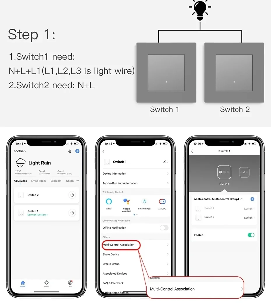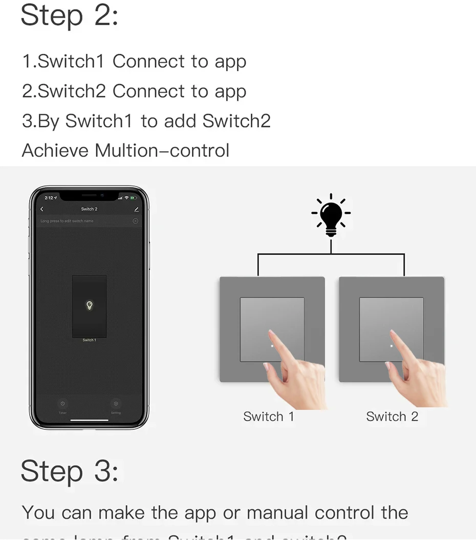 R:Sí, este tipo de interruptor puede funcionar entre sí para controlar la misma luz; al menos debes comprar interruptores de 2 piezas.(La aplicación utiliza la función de asociación de control múltiple), tenga en cuenta que el interruptor inteligente no pudo funcionar con un simple interruptor.