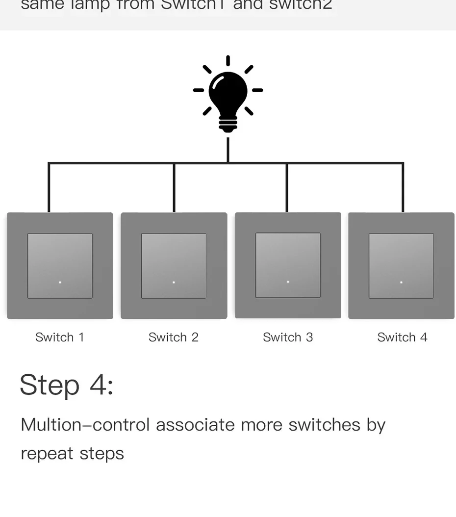 Asociación de control múltiple: la misma luz se puede controlar desde 1/2/3/4 lugares diferentes con el mismo tipo de interruptores.