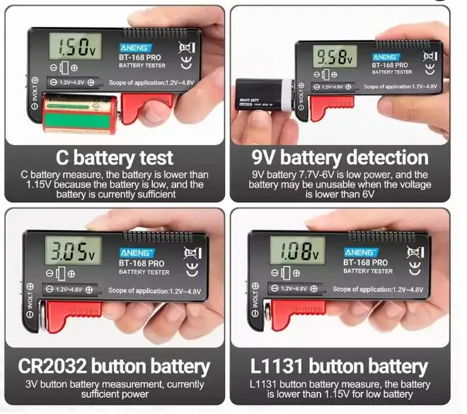 Probador de capacidad de batería Digital BT168D BT168 Pro, comprobador LCD BT-168D para baterías C D de celda AA AAA de 9V y 1,5V