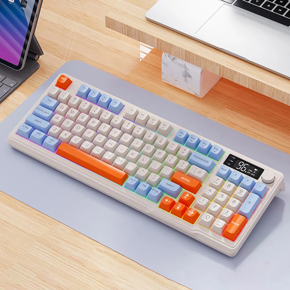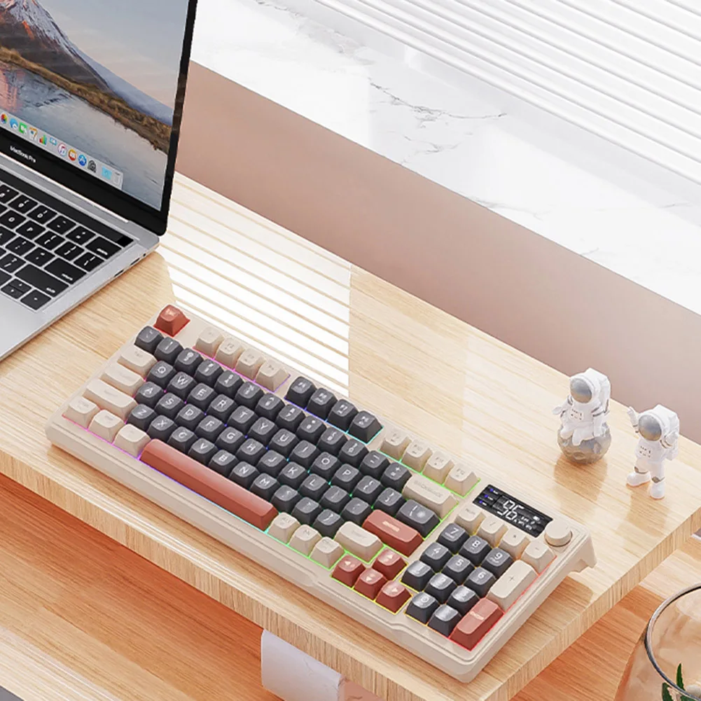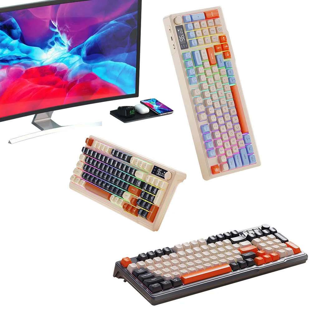 Característica:1.Pantalla digital de batería para monitoreo mejorado:El teclado inalámbrico cuenta con una pantalla digital de duración de la batería, lo que permite a los usuarios controlar fácilmente la capacidad de la batería.Con funcionalidades adicionales como control de volumen de la perilla, estado de la batería, estado de conexión, indicador de batería baja y estado de carga, este teclado para juegos garantiza que siempre esté en control e informado.