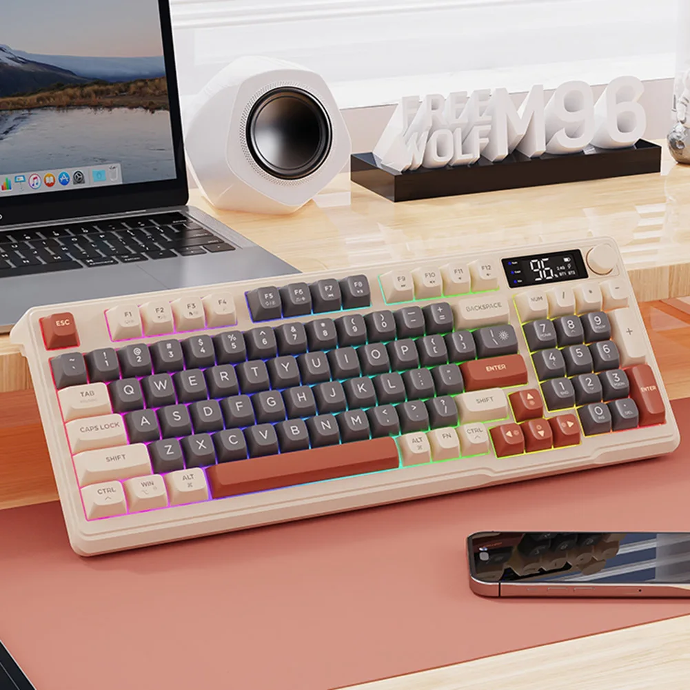 5.Diseño compacto para ahorrar espacio:El teclado cuenta con un diseño minimalista de 96 teclas, lo que simplifica el diseño y organiza científicamente las teclas para reducir significativamente el uso del espacio.Esta característica lo convierte en una opción ideal tanto para jugadores como para profesionales que aprecian una configuración limpia y ordenada.