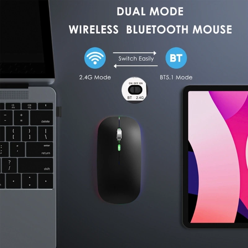 Comprar BT5.1 + 2.4Ghz Ratón inalámbrico de modo dual 5 teclas 1600DPI Ajustable Mause y Jiggler Dropship