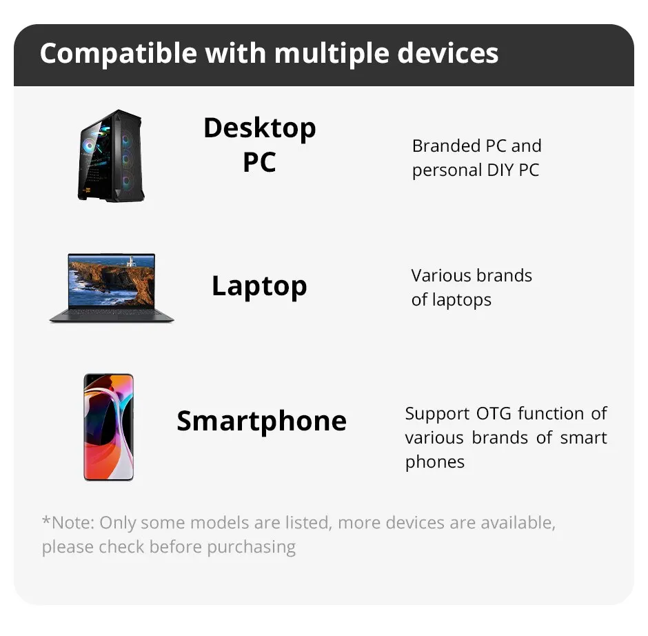Equipo aplicable: computadoras de escritorio, teléfonos celulares, computadoras portátiles y más dispositivos
