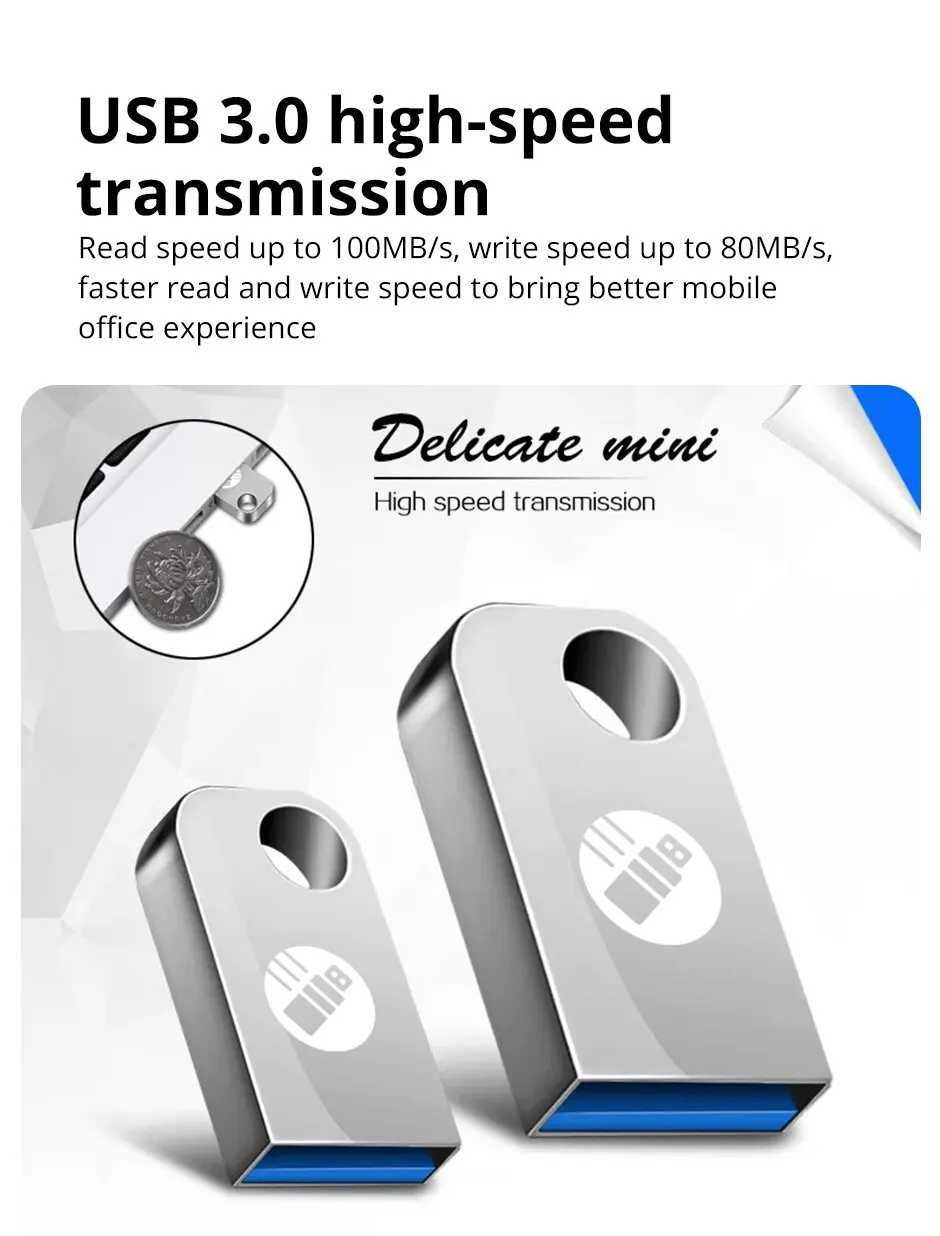 Es muy pequeño y elegante, perfecto para llevar en un llavero. En cuanto a la velocidad, probablemente no sea 3.0.