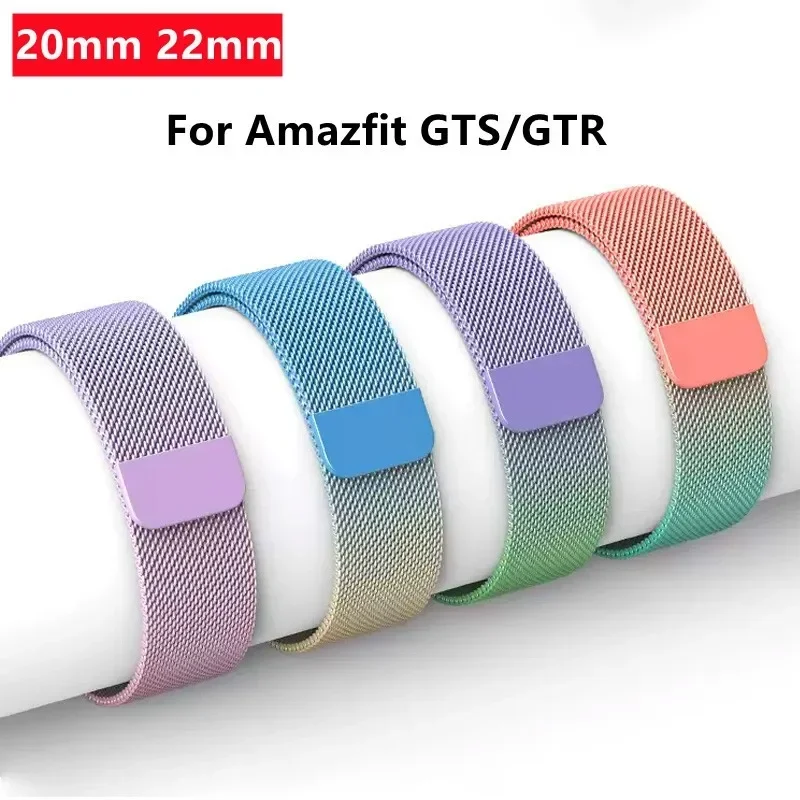 Correa milanesa para Amazfit GTS/GTR-4-3-2-2e-Mini-Pro/stratos 3 Pulsera de metal Correa de reloj de 20 mm y 22 mm para correa Amazfit bip-U-S-lite