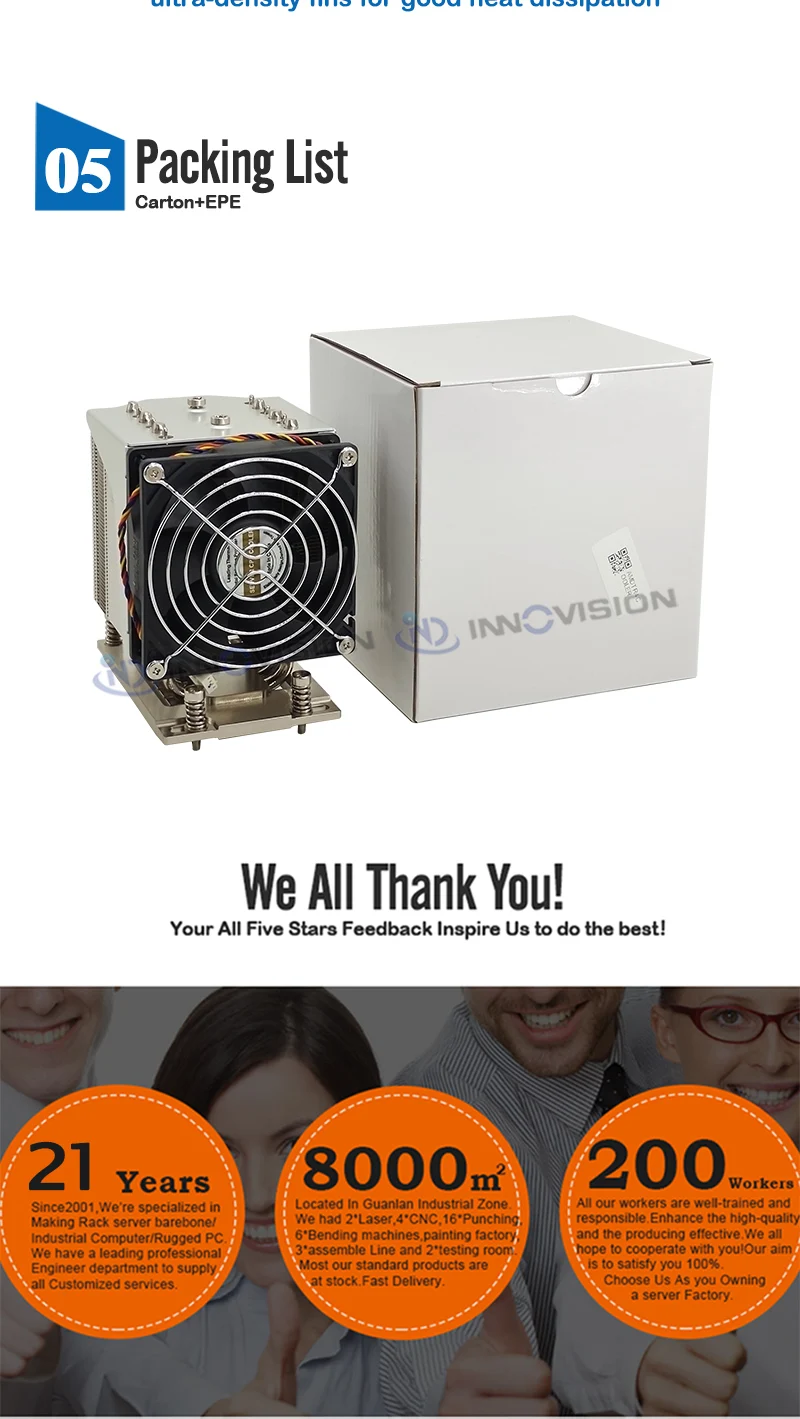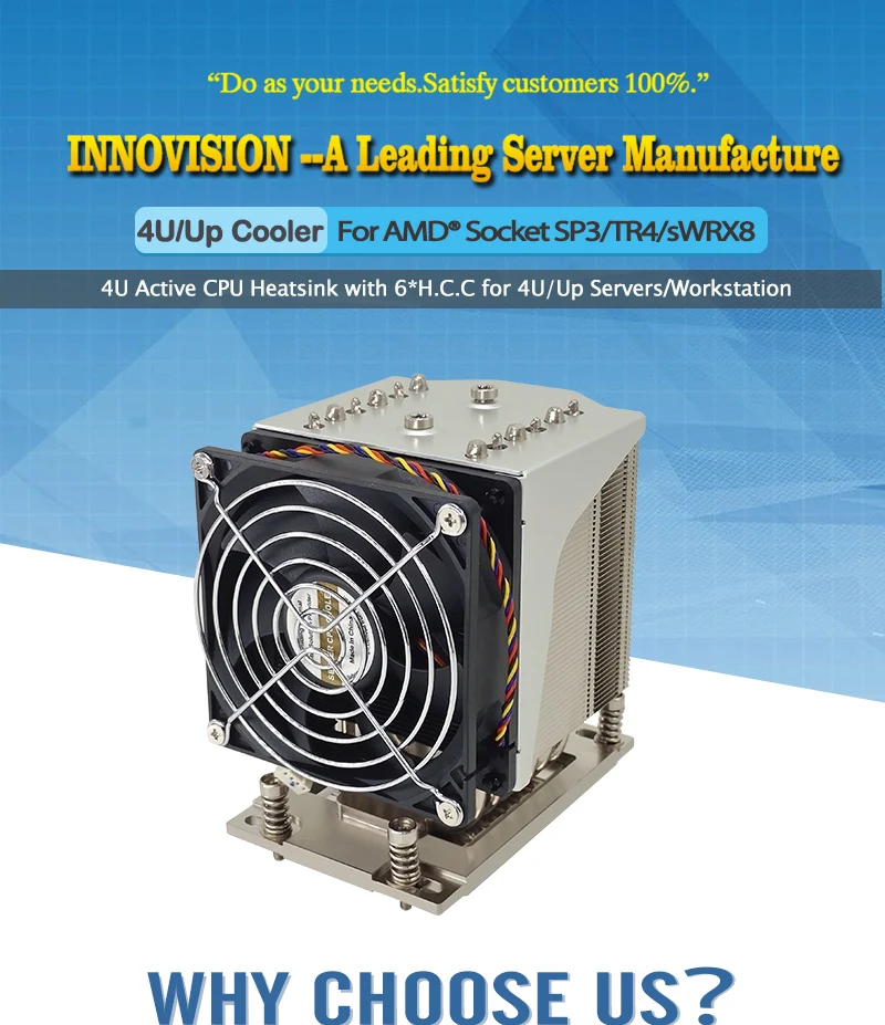Buen Socket AMD SP3/TR4/sTRX4/sWRX8 TDP280W Enfriador de CPU servidor 4U o disipador de calor superior Tubo de calor integrado 6