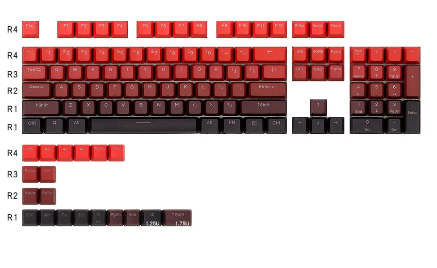La versión de 123 teclas incluye CAMBIO DE 1.75U, barra espaciadora de 6.25U, es compatible con teclado mecánico de diseño 61 、 64 、 68 、 84 、 87 、 96 、 980 、 104 、 108, etc. con interruptores MX