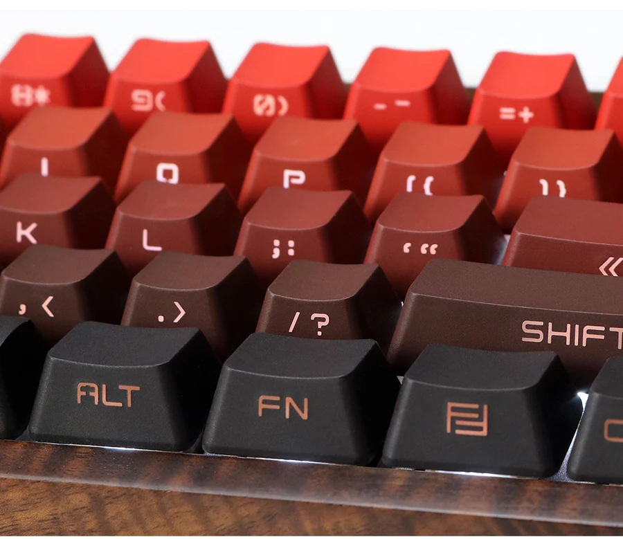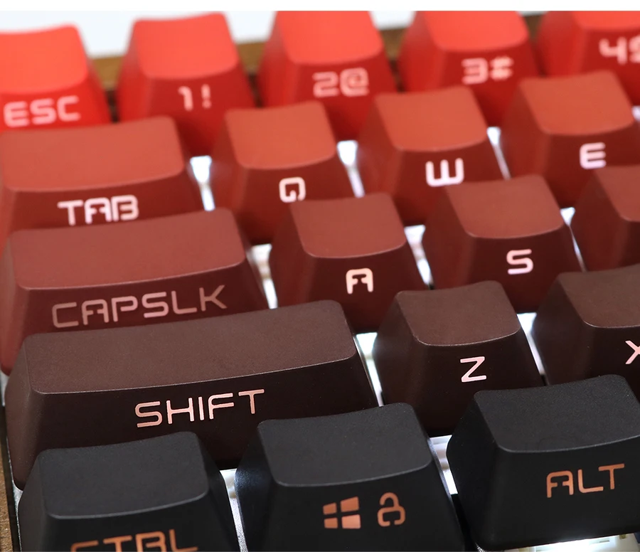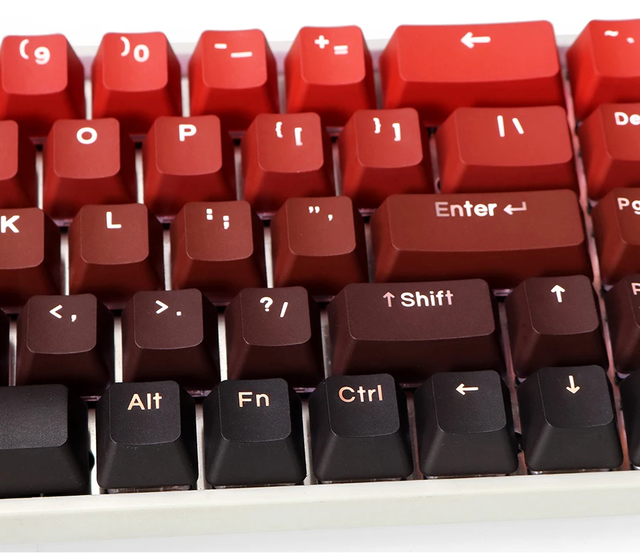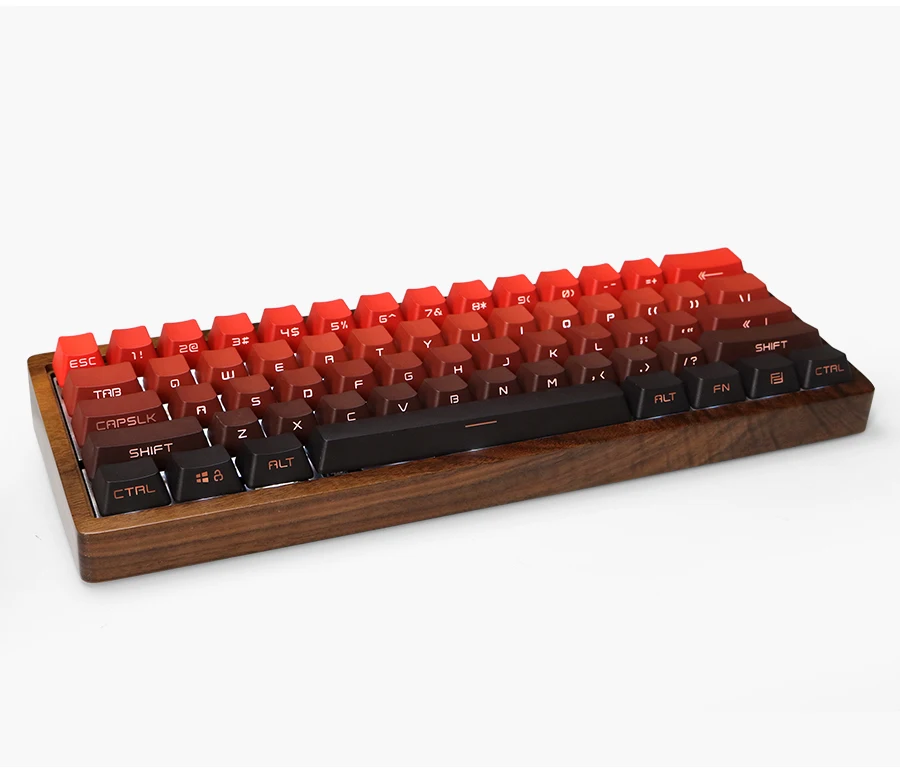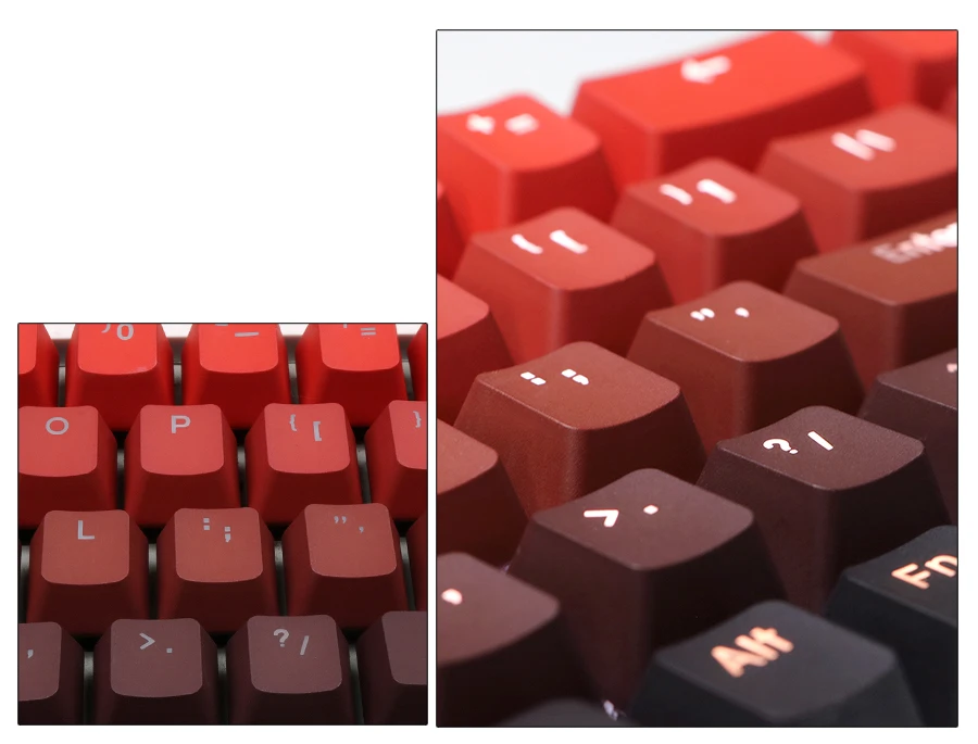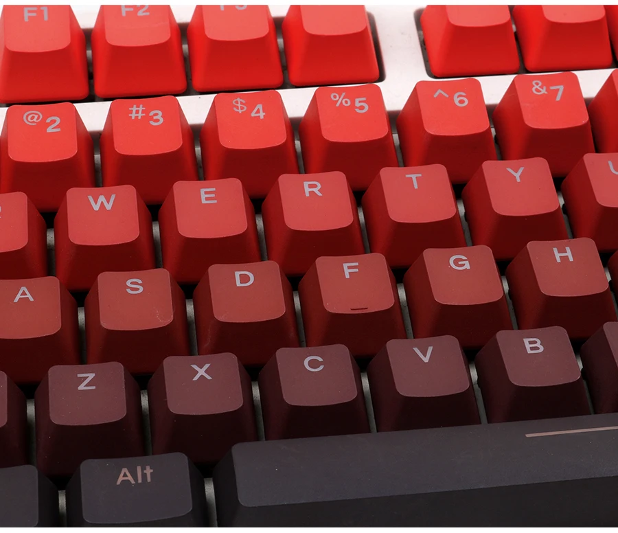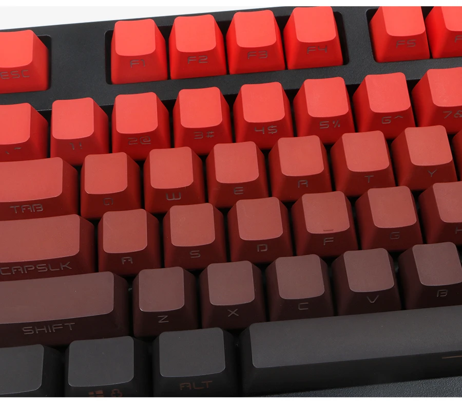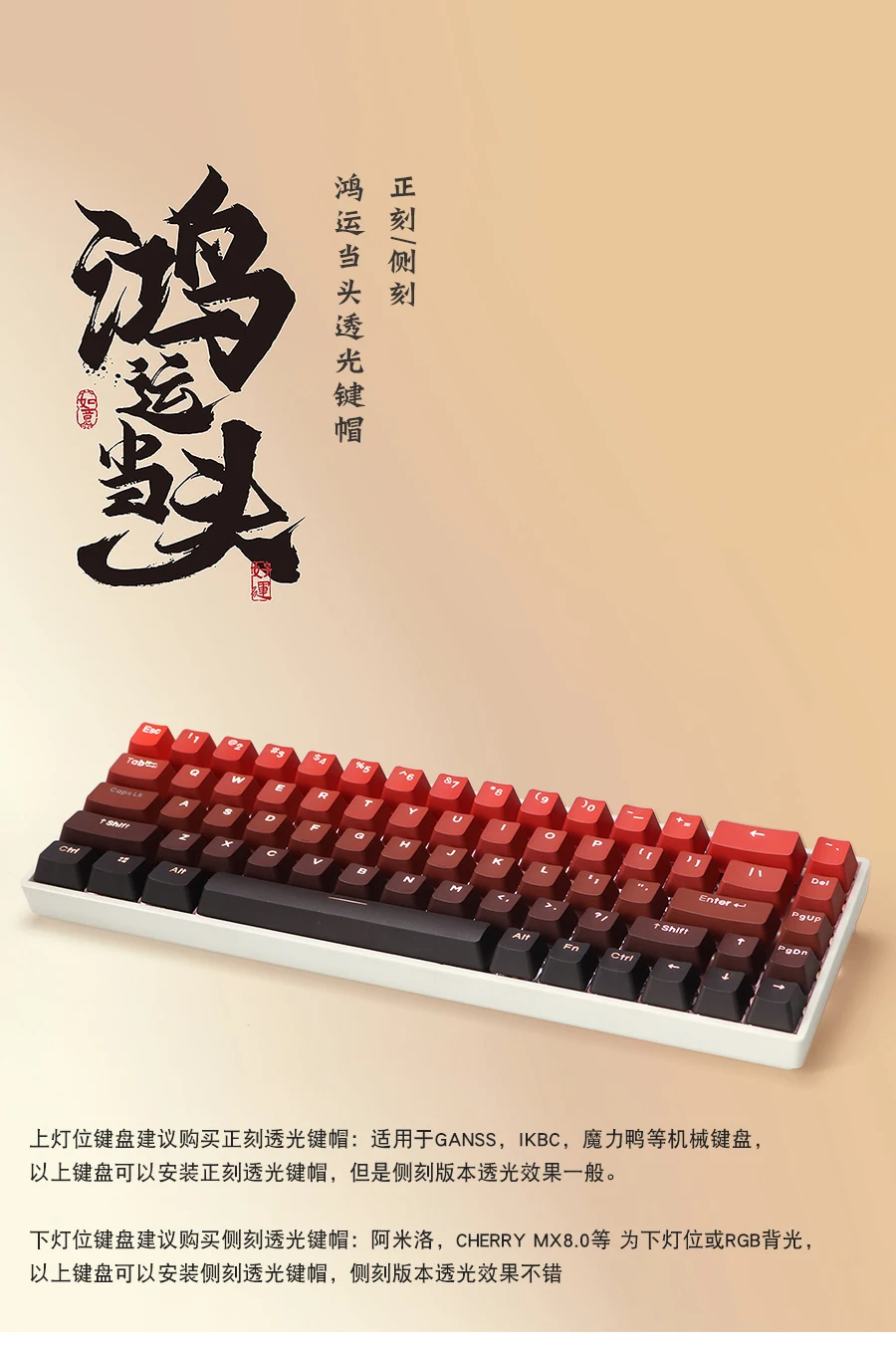 Comprar Buena suerte-teclas transparentes con gradiente retroiluminado, Color rojo, perfil OEM, PBT, letras superiores y laterales, 61, 68, 84, 96, 104