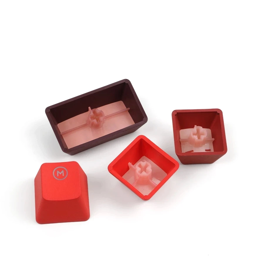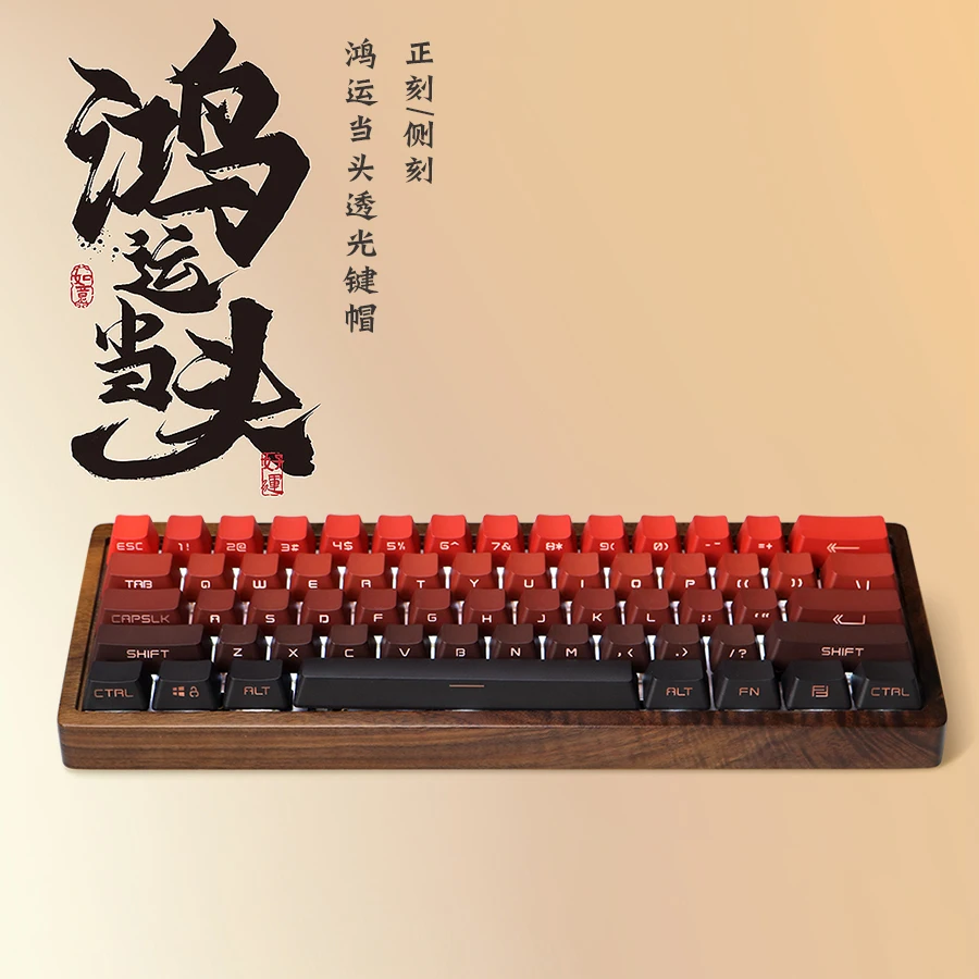 Comprar Buena suerte-teclas transparentes con gradiente retroiluminado, Color rojo, perfil OEM, PBT, letras superiores y laterales, 61, 68, 84, 96, 104