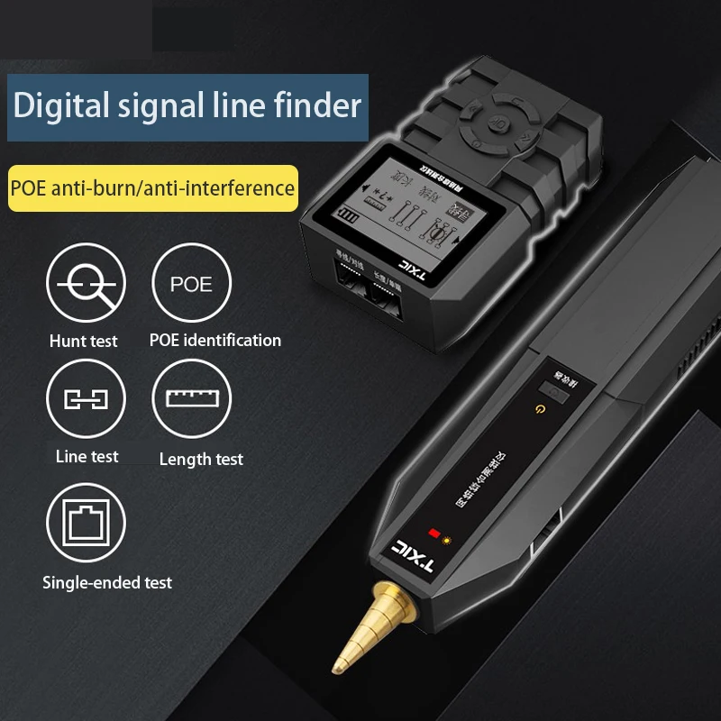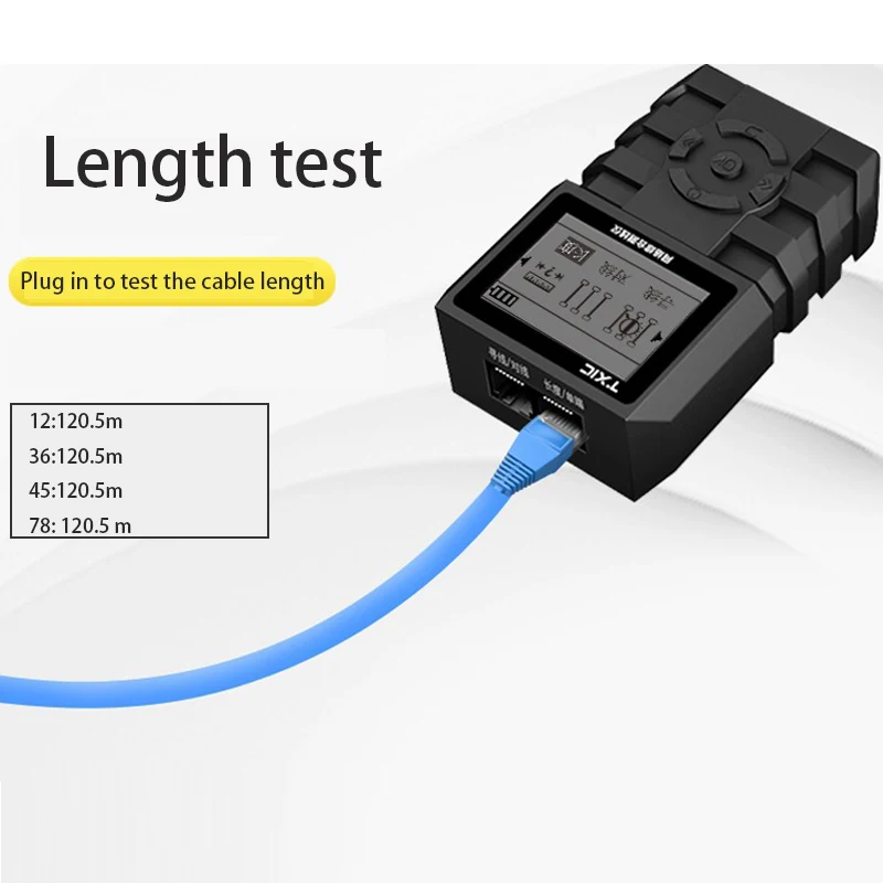 Comprar Buscador de línea pantalla LCD medida longitud RJ45 Cable Tracker Lan medida probador herramientas de red cable PoE comprobador Wiremap utp tester