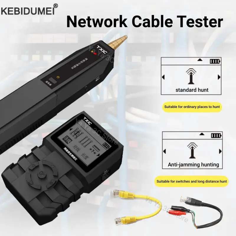 Comprar Buscador de línea pantalla LCD medida longitud RJ45 Cable Tracker Lan medida probador herramientas de red cable PoE comprobador Wiremap utp tester