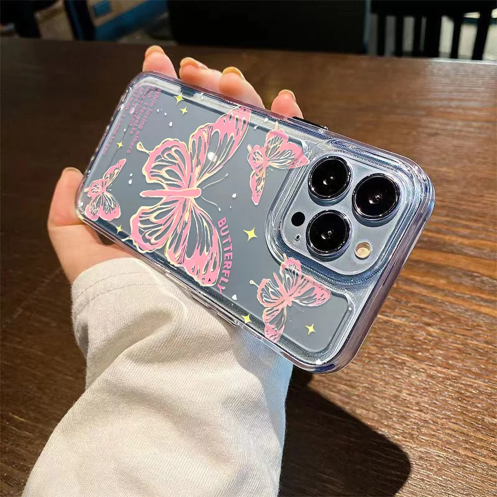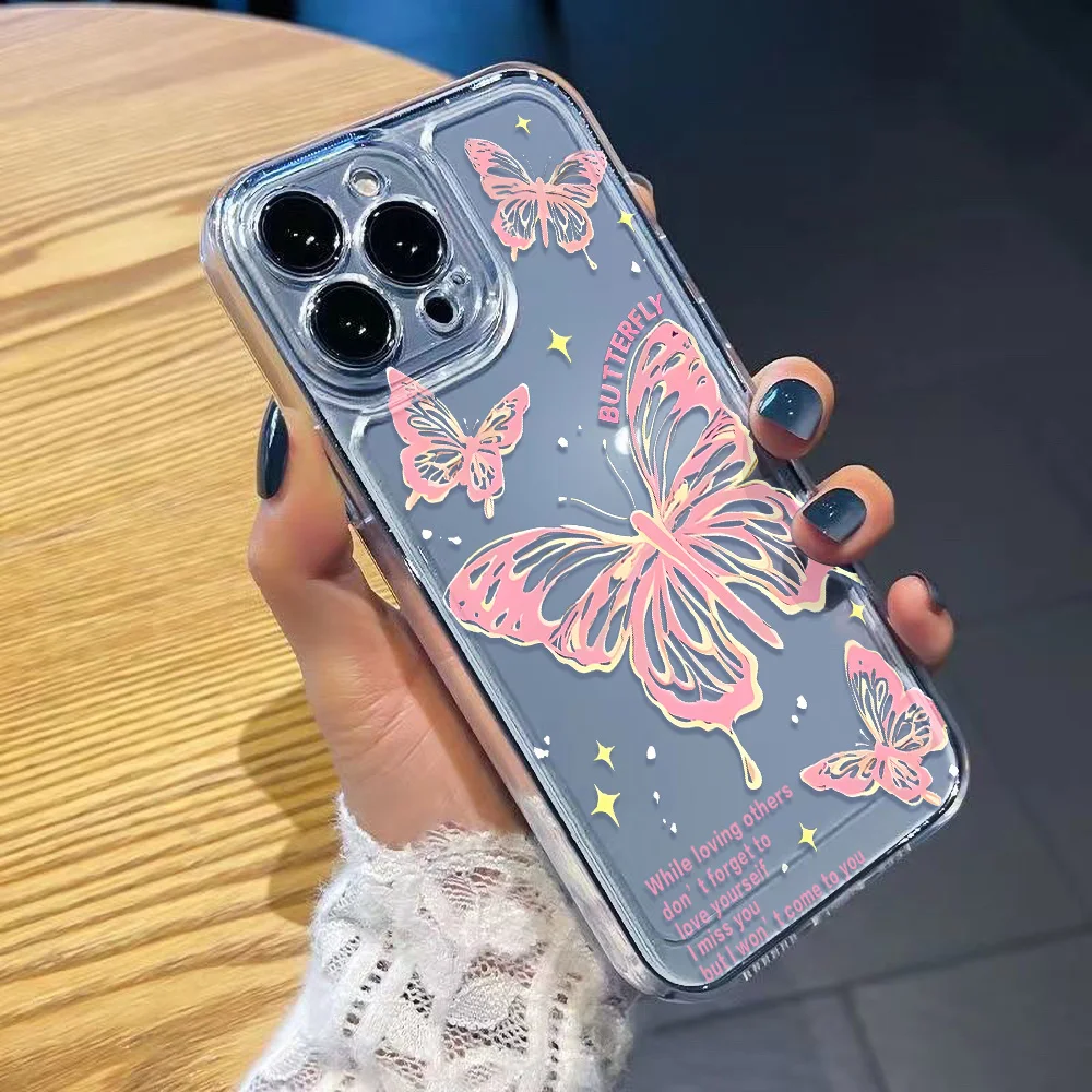 Butterfly Phone Case For iPhone 16 Pro Max 13 11 16E 15 14 12 16promax 15promax 14promax Transparent Soft Silicon Funda Cover