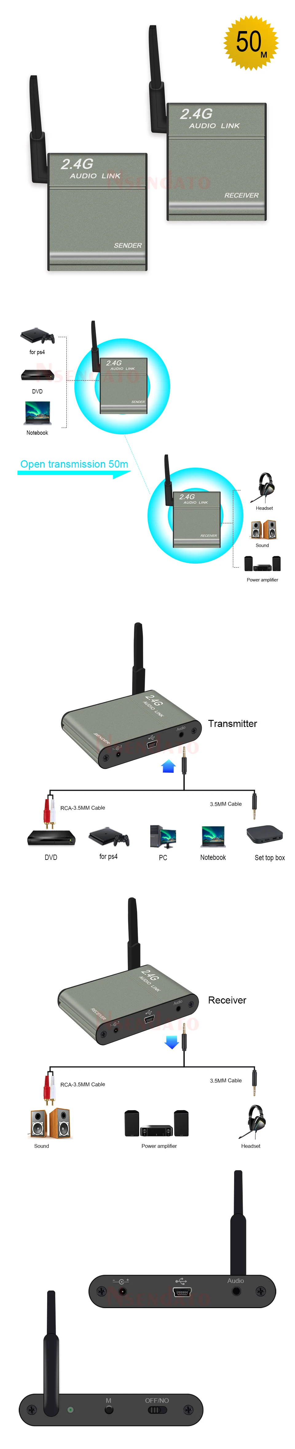 BX501 50M Universal 2.4GHz Stereo Wireless Hi-Fi Music Audio Sender Transmitter Receiver Speaker link Box Adapter for Amplifier