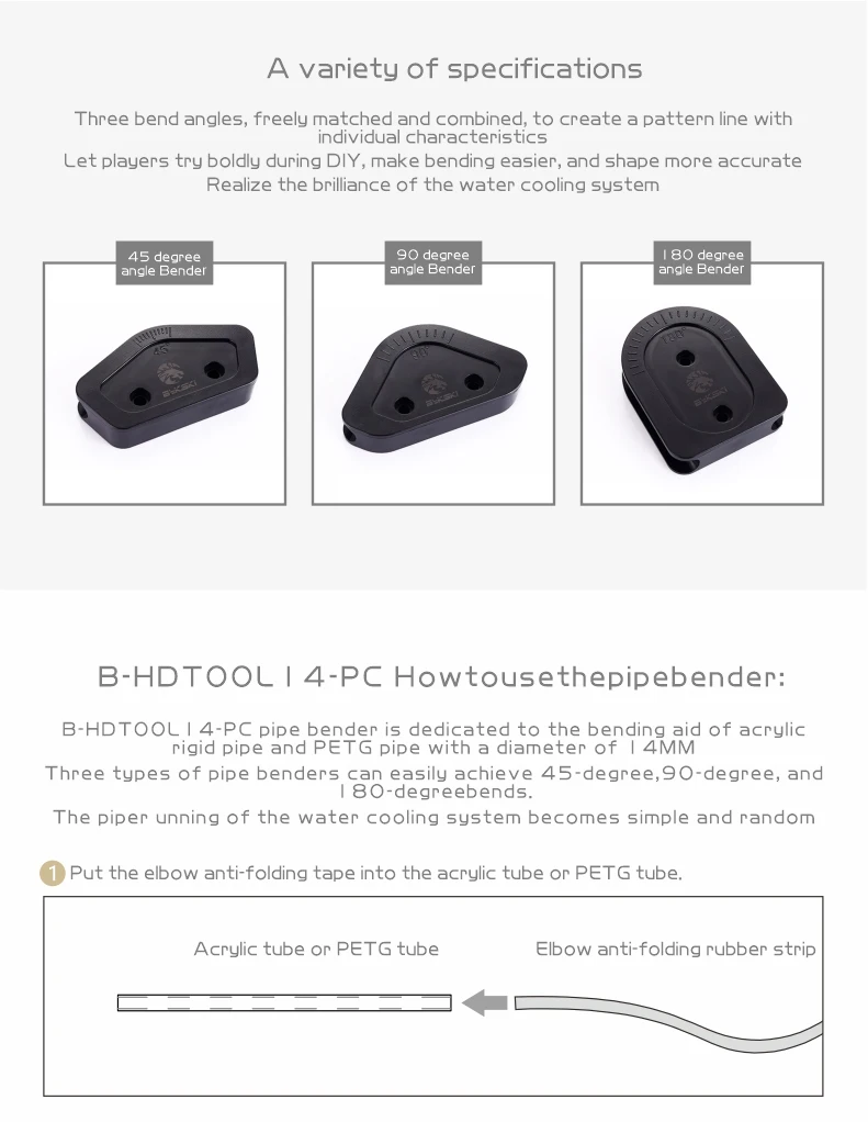 Bykski-ABS multiángulo de uso para tubería acrílica PETG, molde de codo de tubo duro de 12mm/14mm/16mm de diámetro, 3 unids/set/juego, Kit de herramientas de curva