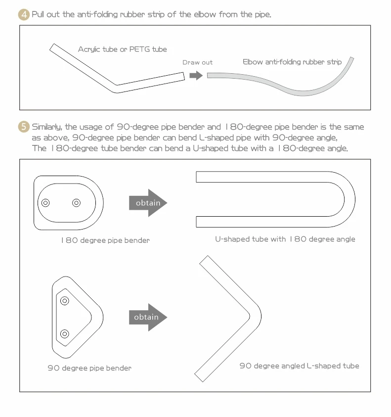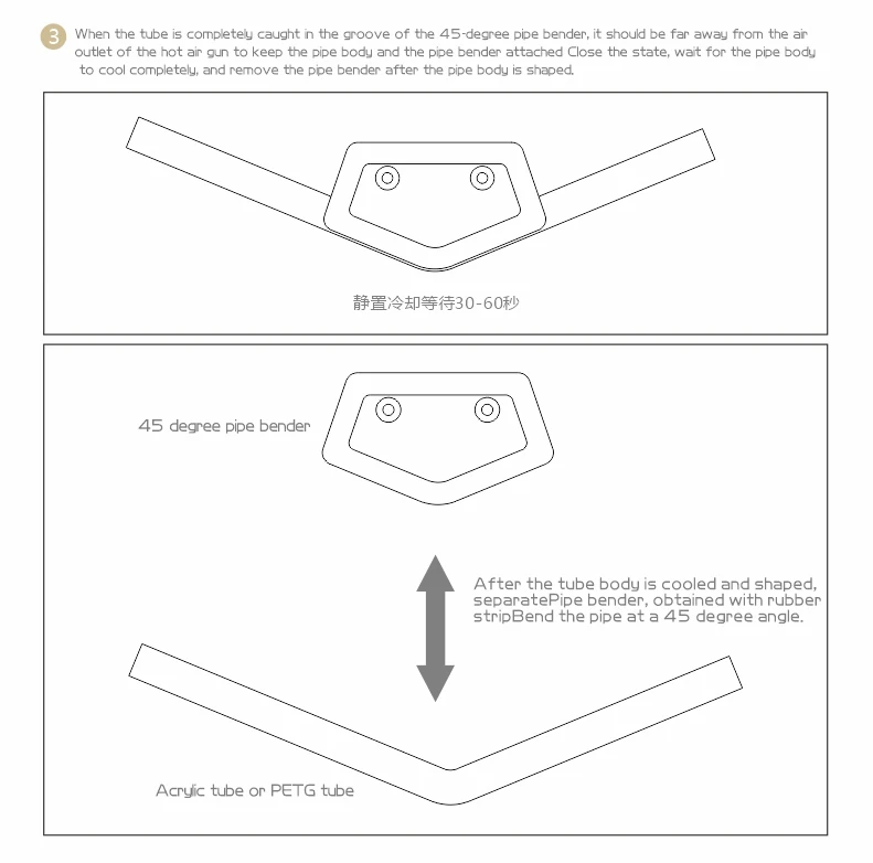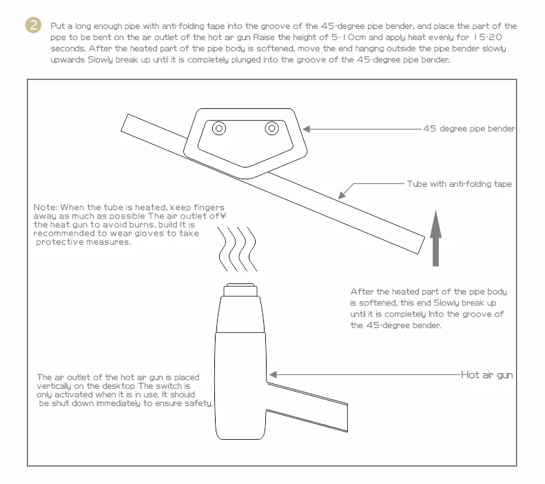 Al usarlo, coloque el tubo acrílico precalentado en el molde del codo para el tratamiento del codo. No caliente la fuente de calor directamente al molde del codo.