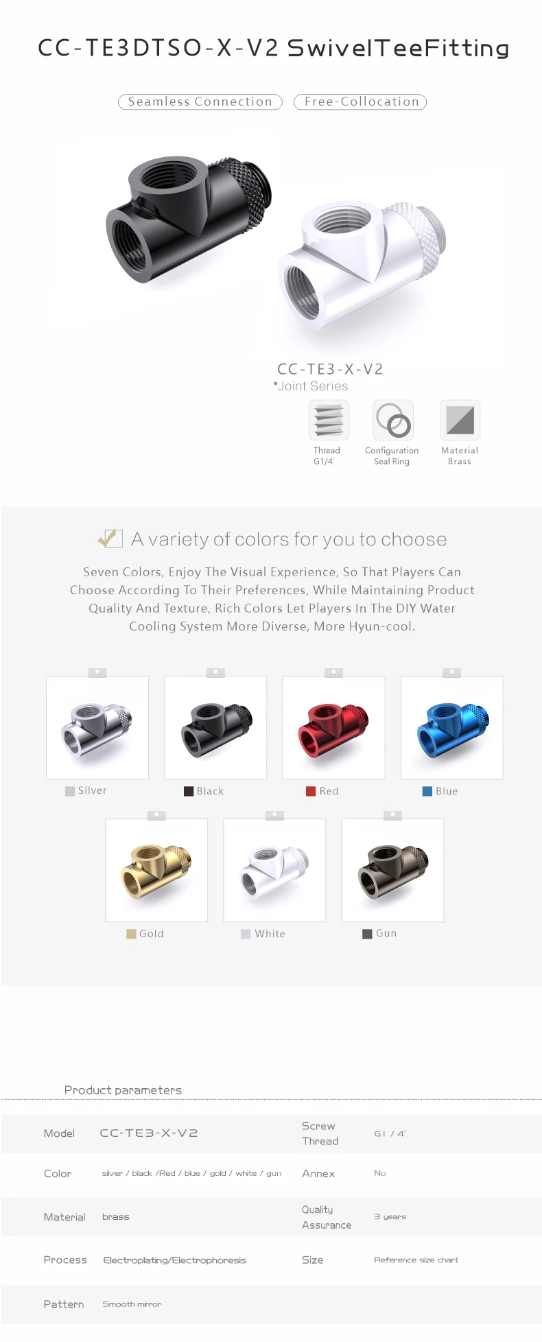 Comprar Bykski-accesorios divididos giratorios macho a hembra tipo T de 3 vías, Conector de adaptadores multicanal de refrigeración por agua para PC, CC-TE3DTSO-X-V2