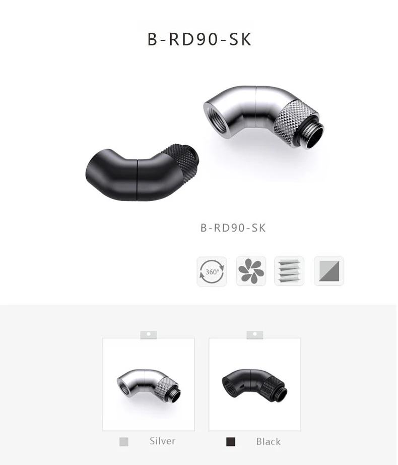 Comprar BYKSKI-adaptador giratorio G1/4 ", rosca de 90 grados, refrigeración por agua, adaptador de Metal de latón, B-RD90-SK