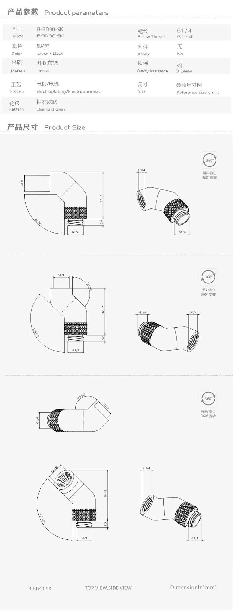 Comprar BYKSKI-adaptador giratorio G1/4 ", rosca de 90 grados, refrigeración por agua, adaptador de Metal de latón, B-RD90-SK