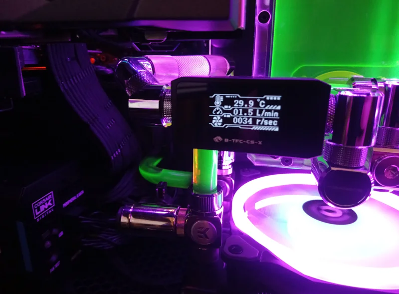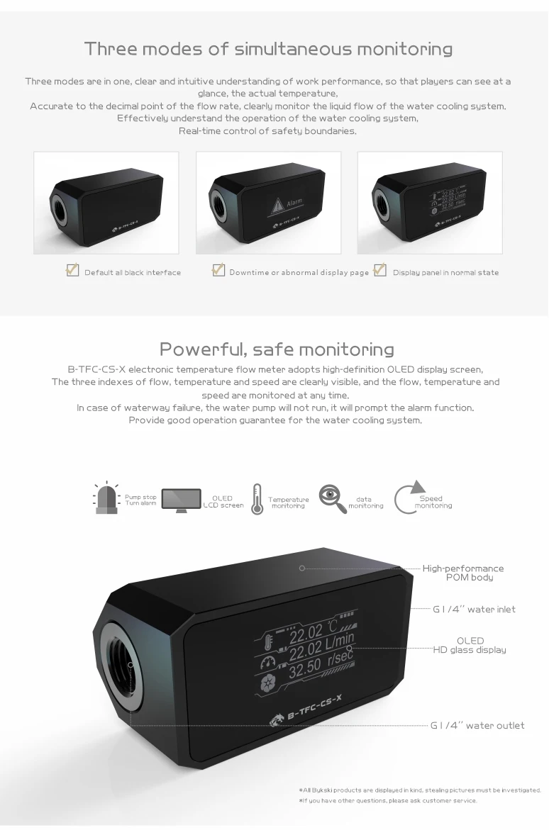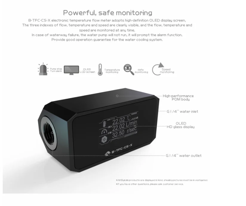 Comprar Bykski-Alarma de refrigeración por agua para ordenador, sistema de Monitor 3 en 1 con pantalla Digital OLED, temperatura + flujo, B-TFC-CS-X