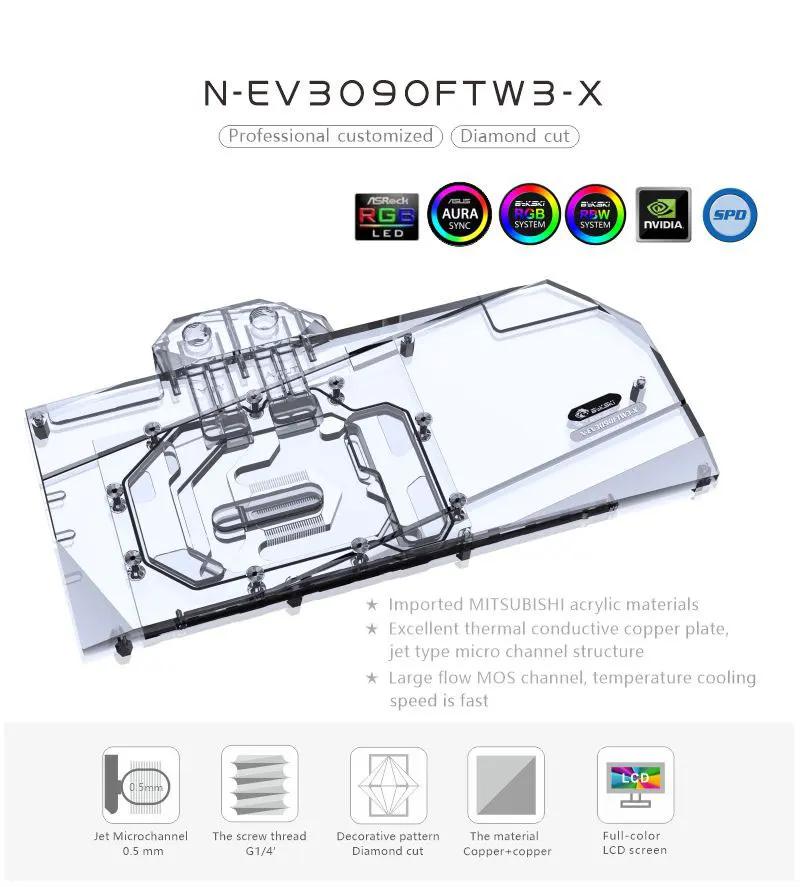 Comprar Bykski-bloque de agua 3090 3080 GPU para tarjeta gráfica EVGA RTX3090 3080 FTW3 ULTRA GAMING, VGA Cooler 5V/12V M/B SYNC,N-EV3090FTW3-X