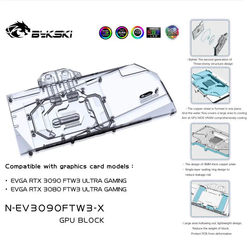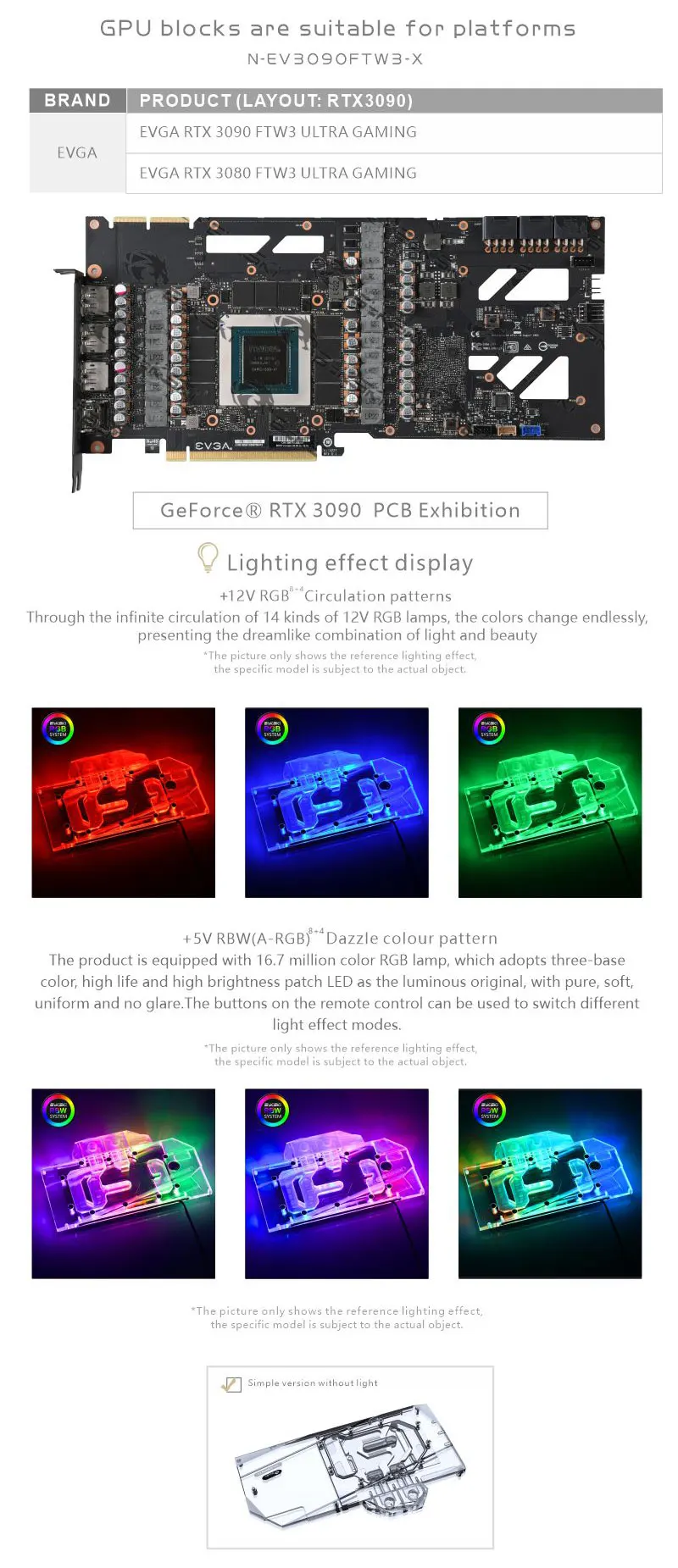 Bykski 3090 3080 GPU bloque de agua para EVGA RTX3090 3080 FTW3 tarjeta gráfica ULTRA GAMING, enfriador VGA 5V/12V M/B SYNC,