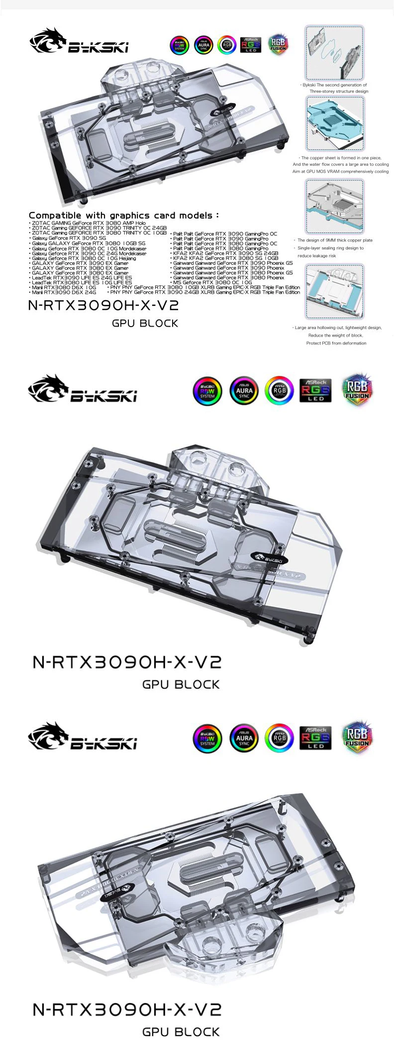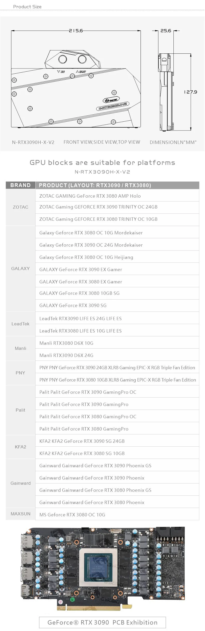 Comprar Bykski-bloque de agua de 3090 GPU para NVIDIA ZOTAC Palit INNO3D GALAX Founder Edition RTX 3090 3080, tarjeta gráfica, N-RTX3090H-X-V2