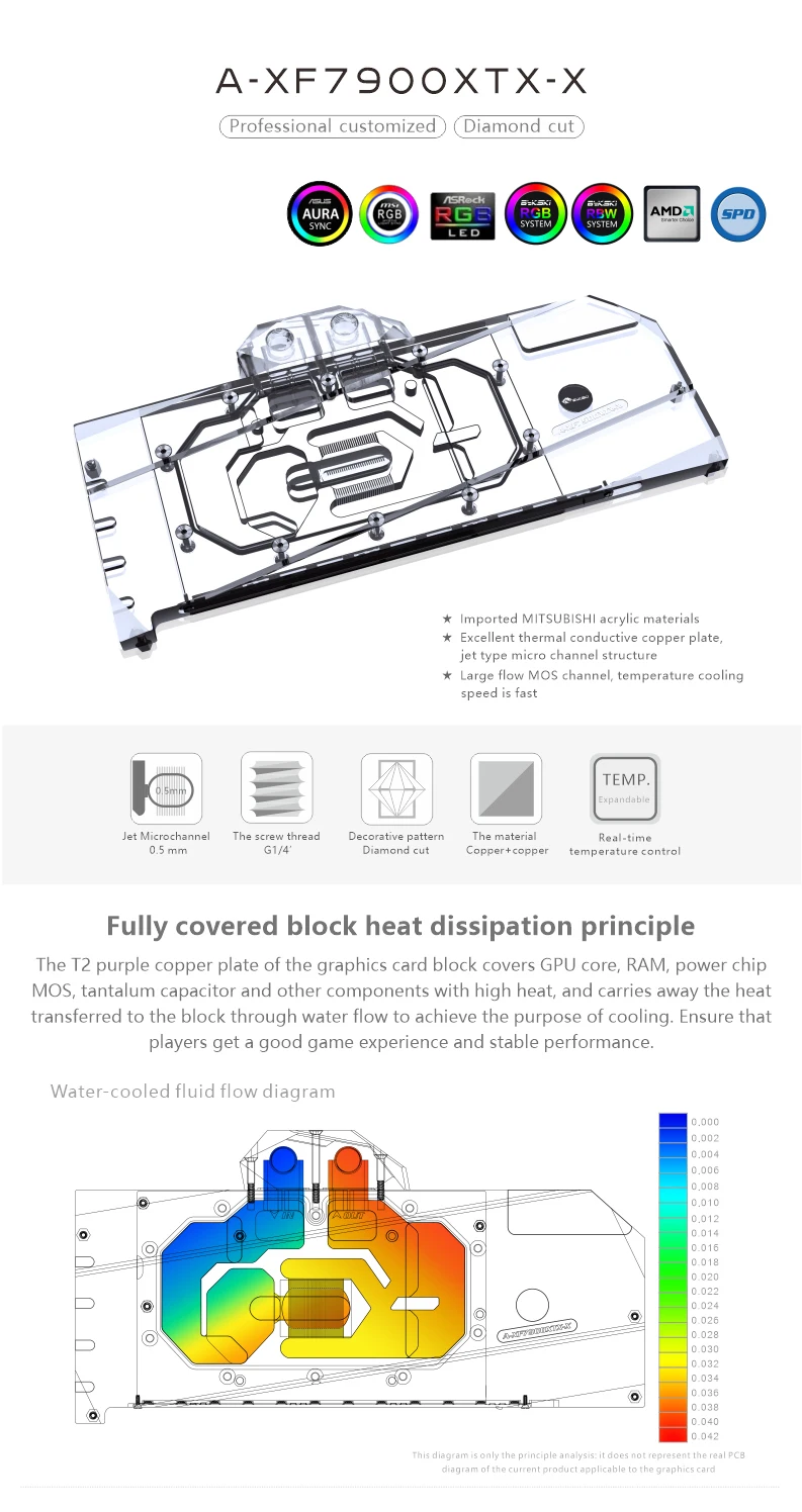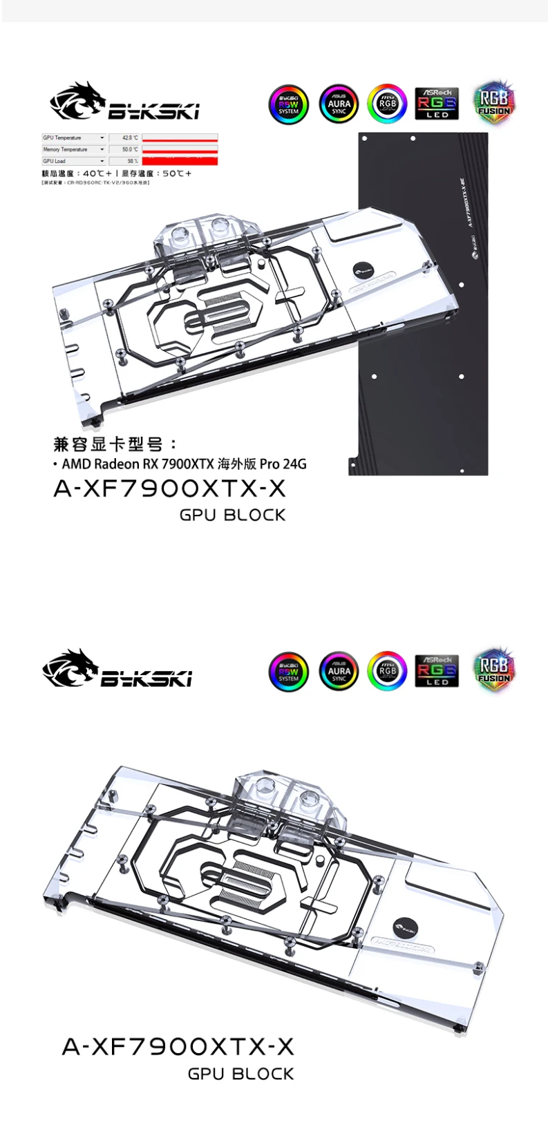 Bykski-bloque de agua 7900XT para AMD Radeon RX 7900XTX GPU, enfriador de agua, 5V, 12V, RGB, MB, A-XF7900XTX-X de sincronización