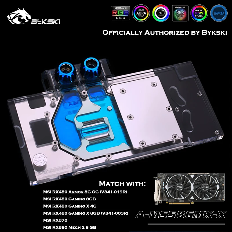 Comprar Bykski-bloque de agua A-MS58GMX-X GPU para MSI RX580/480 Gaming X8G/8G/4G, radiador enfriador VGA, 5V, 12V