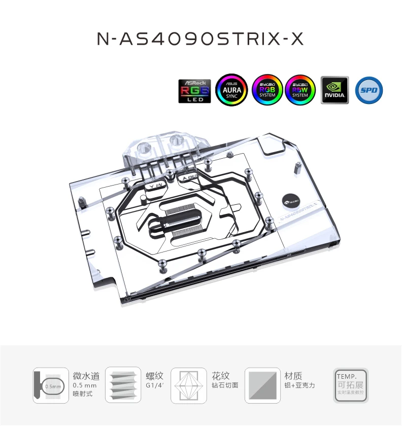 Comprar Bykski bloque de agua para ASUS ROG Strix/TUF Gaming GeForce RTX 4090 tarjeta GPU/radiador de refrigeración de cobre RGB AURA/N-AS4090STRIX-X