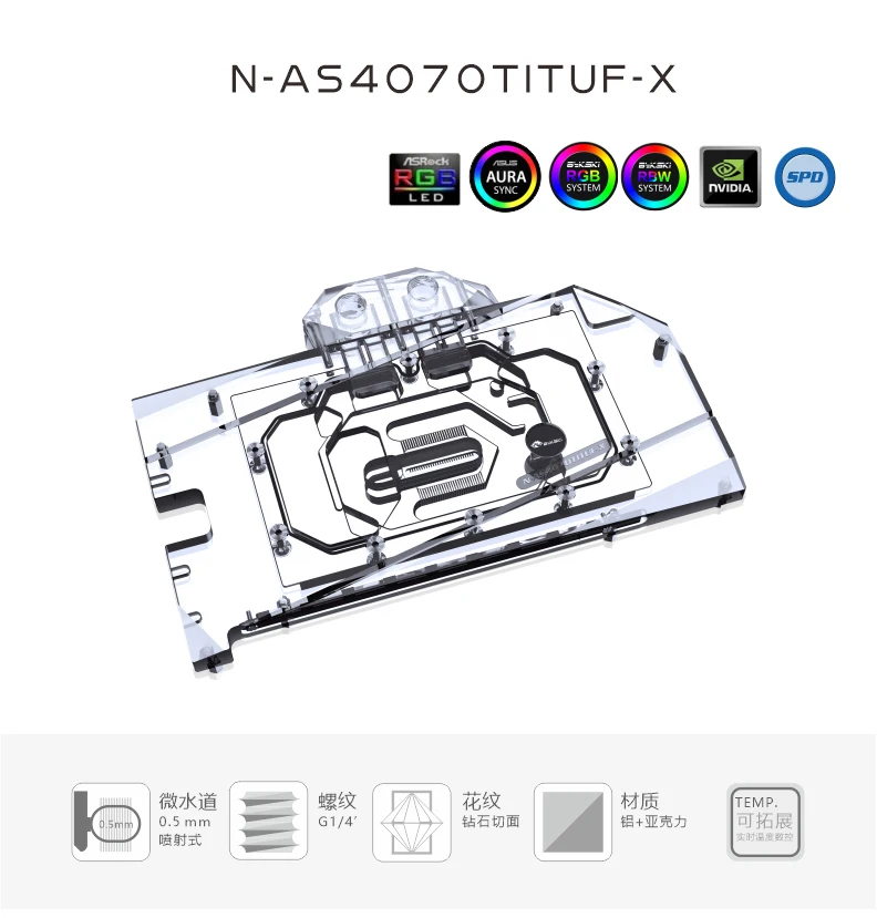 Comprar Bykski-bloque de agua para ASUS TUF GeForce RTX 4070 Ti 12G, tarjeta GPU para juegos/radiador de refrigeración de cobre, sincronización RGB/N-AS4070TITUF-X