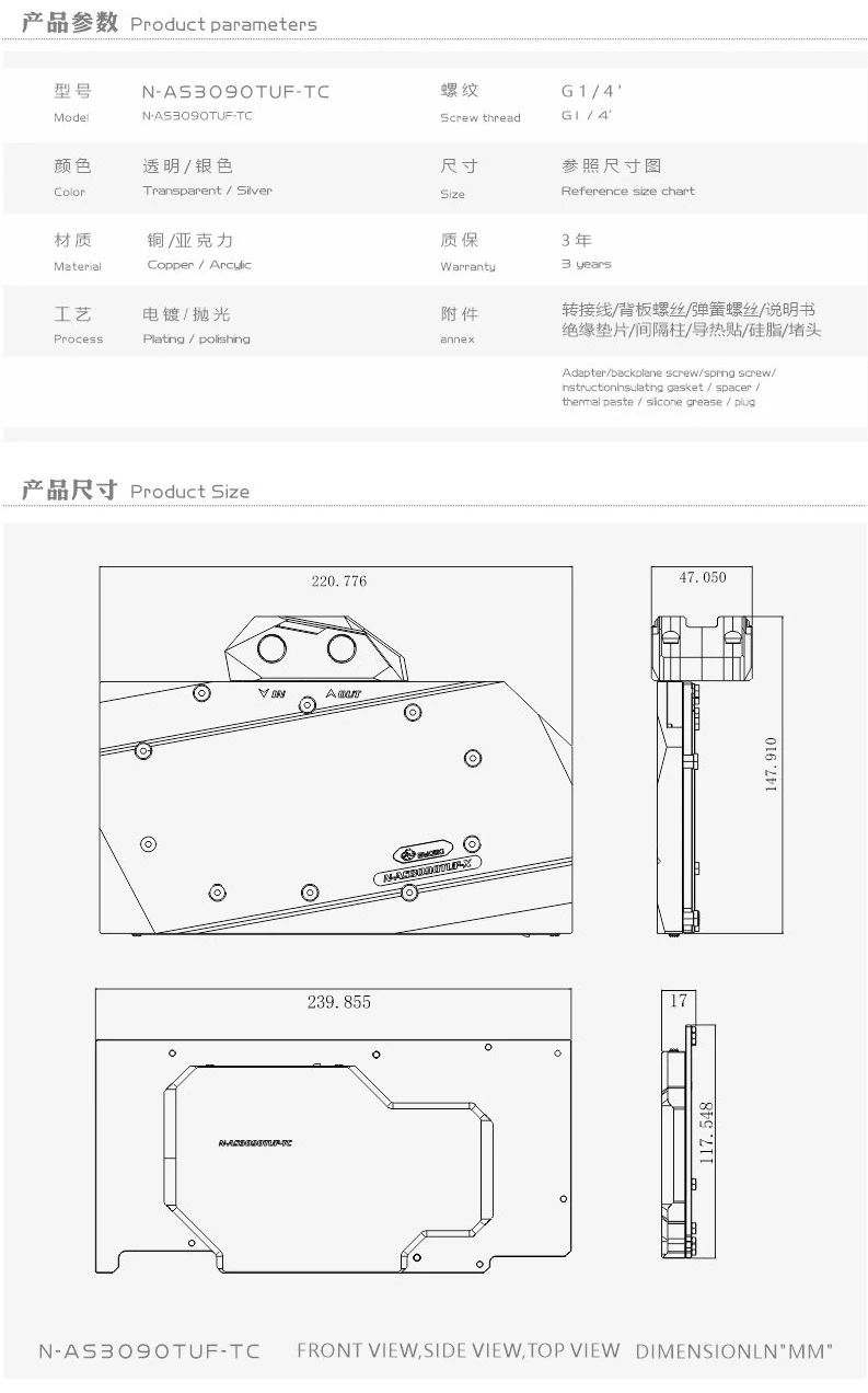 Comprar Bykski-bloque de agua para ASUS TUF RTX 3080 / 3090 10G/24G, GPU para juegos, tarjeta de vídeo, refrigeración activa de la placa trasera, radiador de cobre