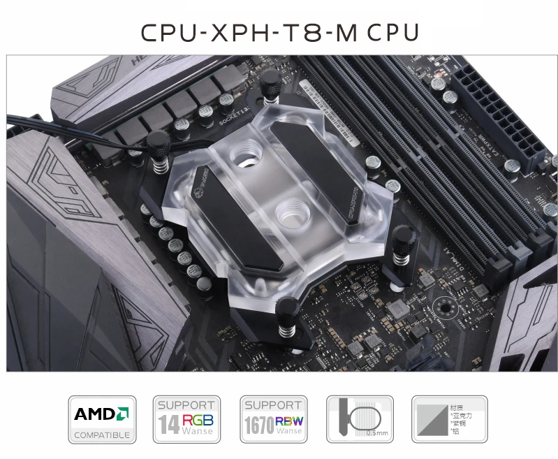 Comprar Bykski-bloque de agua para CPU AMD Ryzen3/5/7 X470/AM/FM, disipador de calor para enfriador de agua, 12V RGB/5V A-RGB/SYNC,CPU-XPH-T8-M