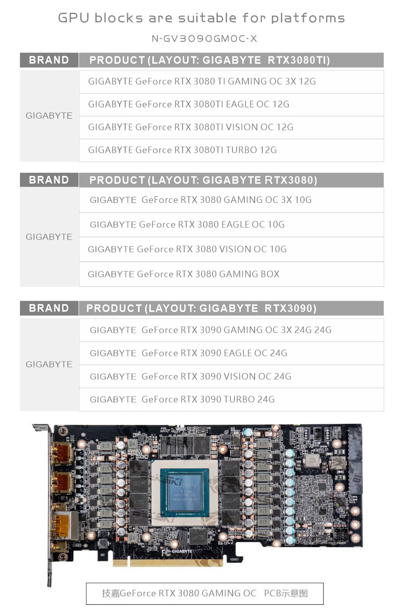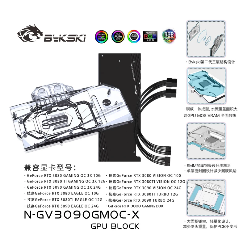 Comprar Bykski-bloque de agua para GIGABYTE RTX 3080 3090 GAMING EAGLE VISION OC 10G /TURBO 24G/radiador de cobre/placa trasera RGB AURA