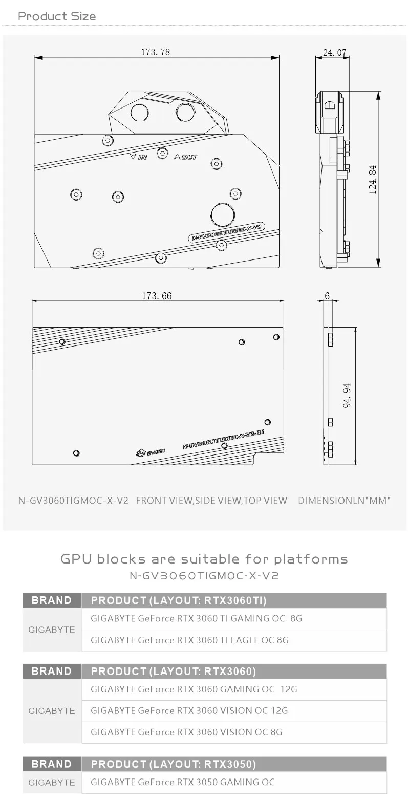 Comprar Bykski bloque de agua para GIGABYTE RTX3060 / RTX3060Ti EAGLE /GAMING OC 8G tarjeta GPU/sincronización de radiador de cobre N-GV3060TIGMOC-X-V2
