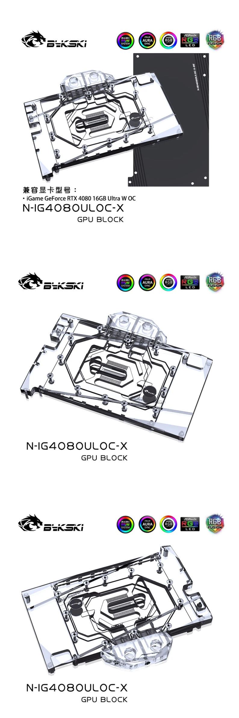 Comprar Bykski-bloque de agua de GPU 4080 para iGame Geforce RTX 4080, 16GB, Ultra W OC, tarjeta gráfica, VGA Liquid Cooler N-IG4080ULOC-X