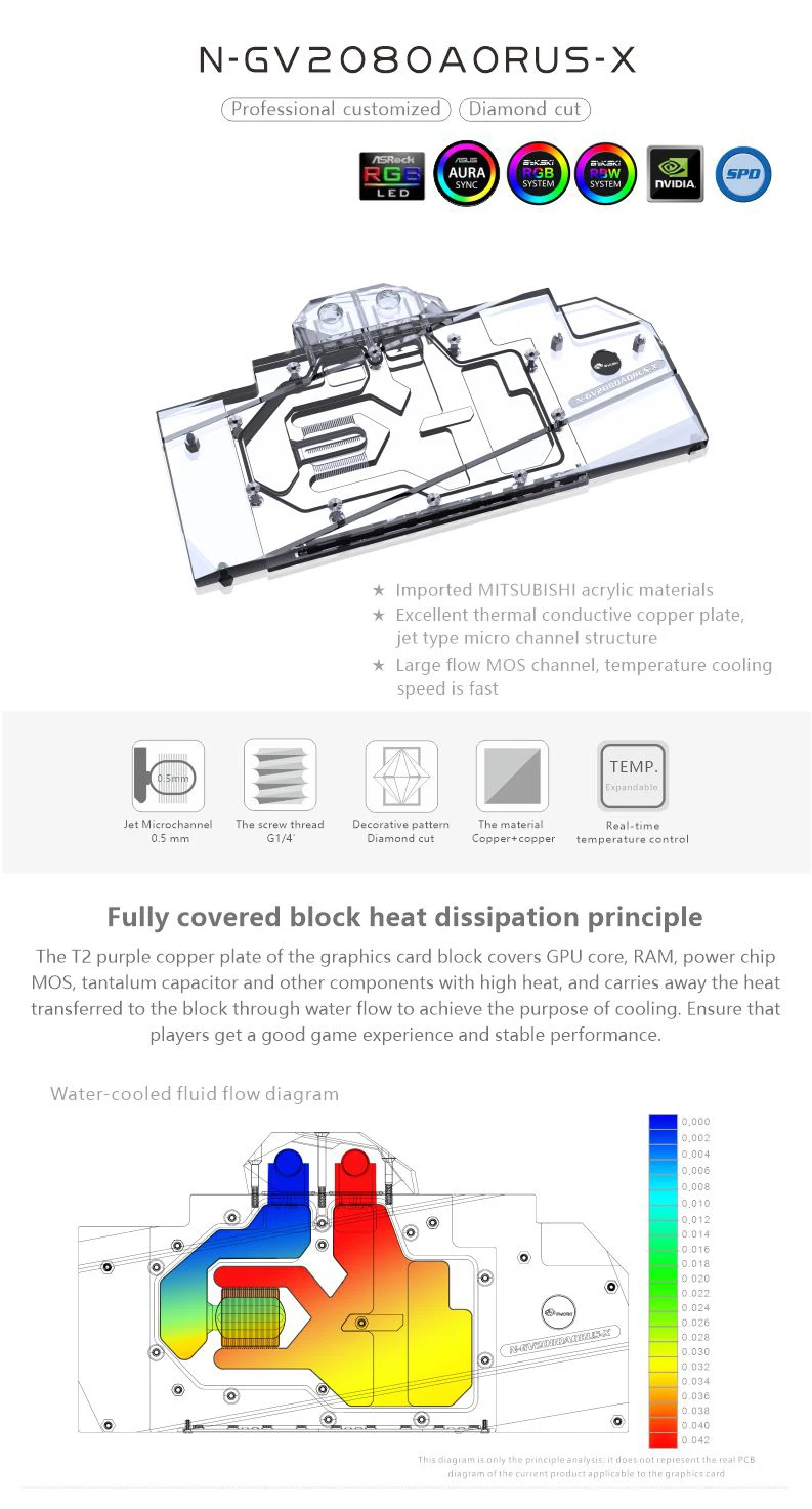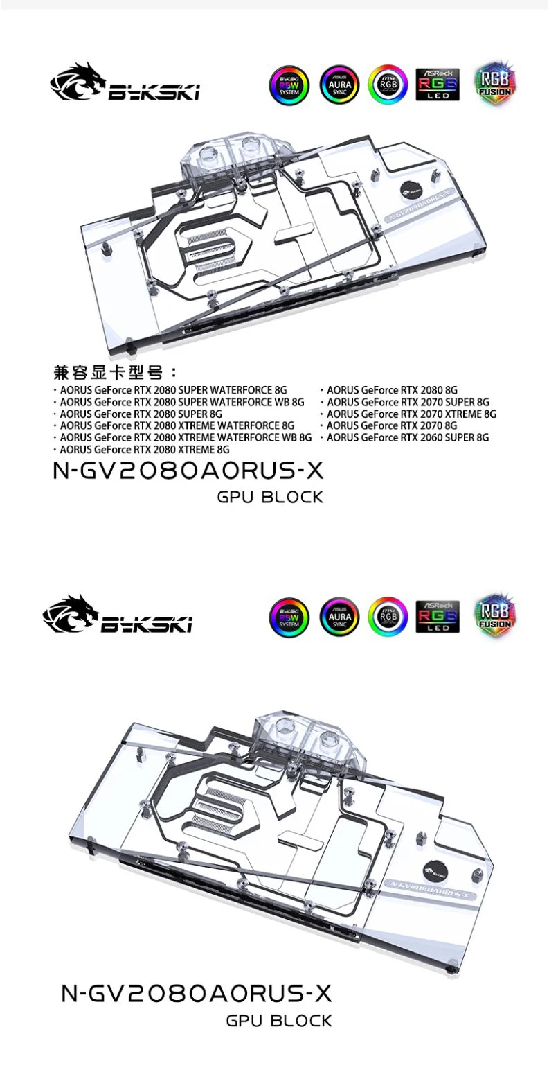 Comprar Bykski-bloque de agua de GPU de cobertura completa para GIGABYTE AORUS RTX2080 XTREME, tarjeta gráfica 8G, enfriador de agua VGA, N-GV2080AORUS-X