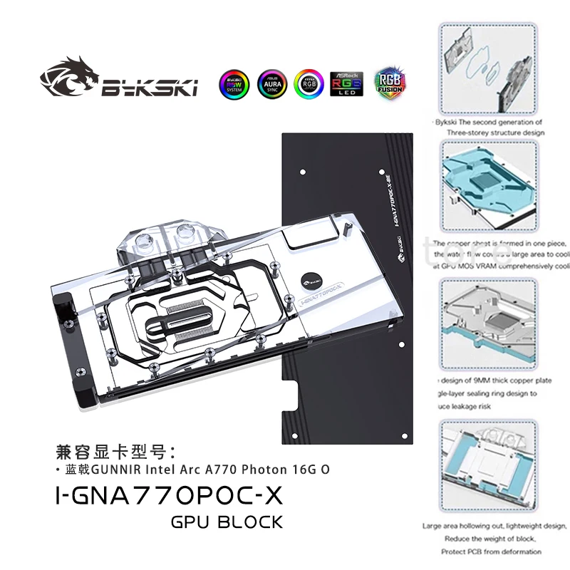 Comprar Bykski-bloque de agua GPU Compatible con GUNNIR Intel Arc A770, fotón 16G OC, tarjeta gráfica, radiador de refrigeración, enfriador VGA, I-GNA770POC-X