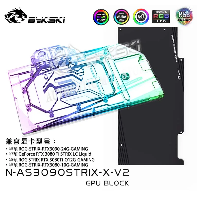 Comprar Bykski-bloque de agua GPU de cubierta completa para tarjeta de vídeo ASUS RTX3080 3090 STRIX, bloque VGA, Enfriador de GPU, 12V RGB/5V ARGB, N-AS3090STRIX-X-V2