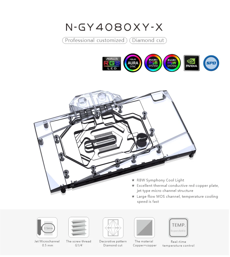 Comprar Bykski-bloque de agua GPU para GALAX GeForce RTX 4080 Super BOOMSTAR OC Card/radiador de refrigeración de cobre RGB AURA / N-GY4080XY-X