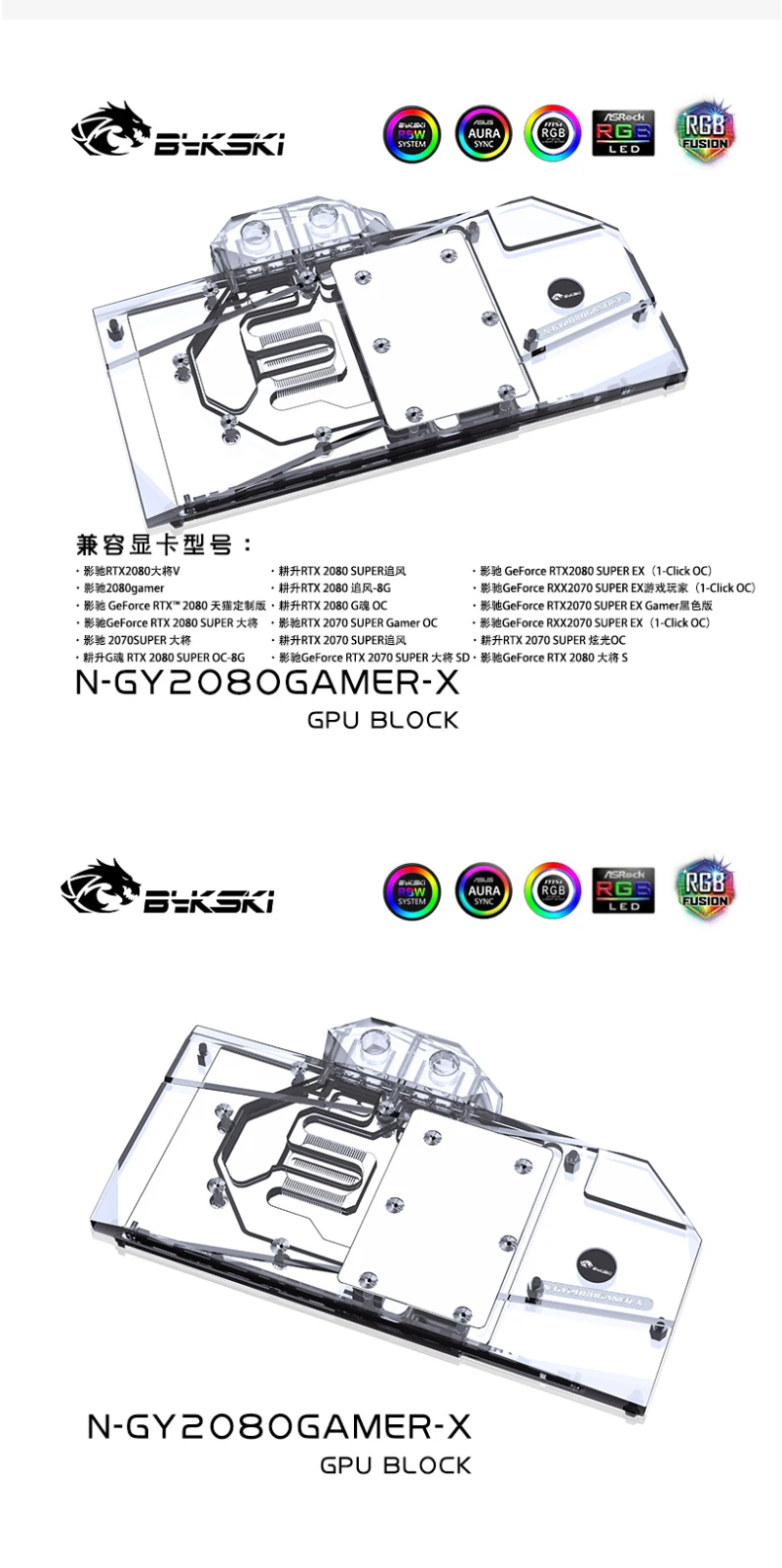 Comprar Bykski-bloque de agua GPU para GAMER GALAX/GAINWARD GEFORCE RTX 2080 2070, tarjeta gráfica Super, VGA Liquid Cooler N-GY2080GAMER-X