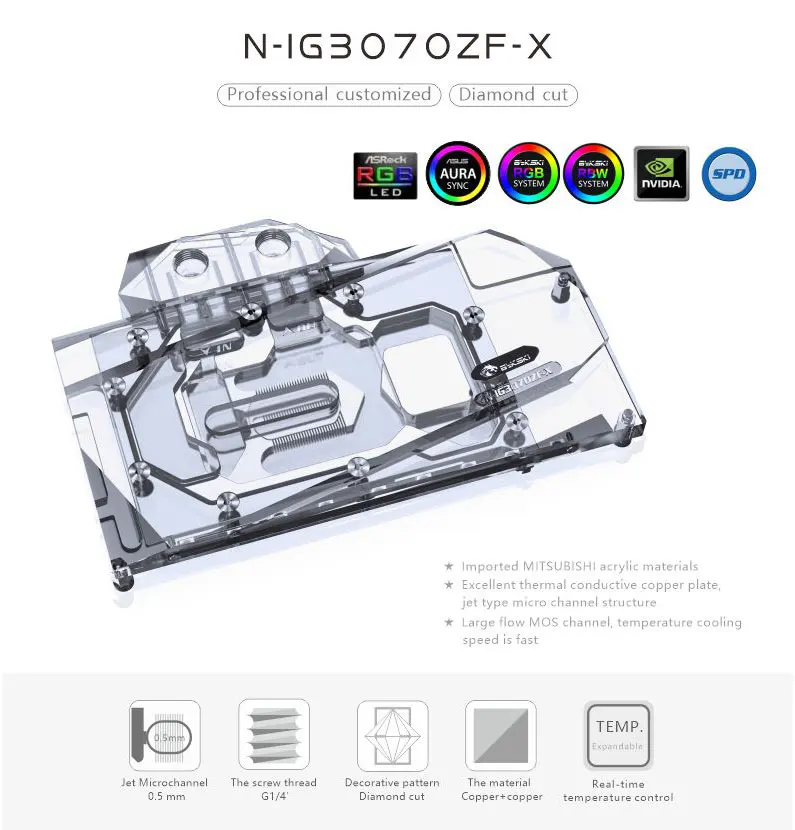 Comprar Bykski-bloque de agua GPU para GeForce RTX 3070 NB-V, refrigeración líquida para tarjeta gráfica, con placa trasera, enfriador VGA, N-IG3070ZF-X