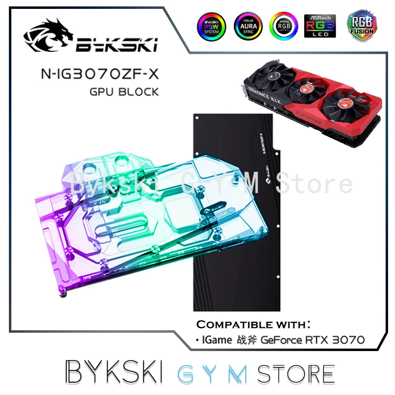 Bykski-Bloque de agua GPU para GeForce RTX 3070, tarjeta gráfica colorida, refrigeración líquida, con placa trasera, enfriador VGA, para tarjeta gráfica de, con placa trasera, para el sistema de refrigeración de la tarjeta gráfica, para el sistema de refrigeración de la tarjeta, de la parte trasera, de la parte de atrás, la parte de la parte del coche