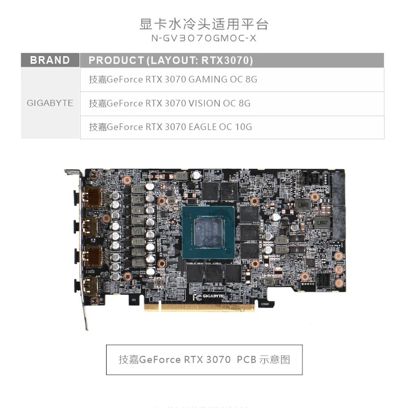 Comprar Bykski-bloque de agua GPU para Gigabyte GeForce RTX 3070, tarjeta gráfica GAMING/VISION/EAGLE 8G OC, enfriador líquido GPU, N-GV3070GMOC-X