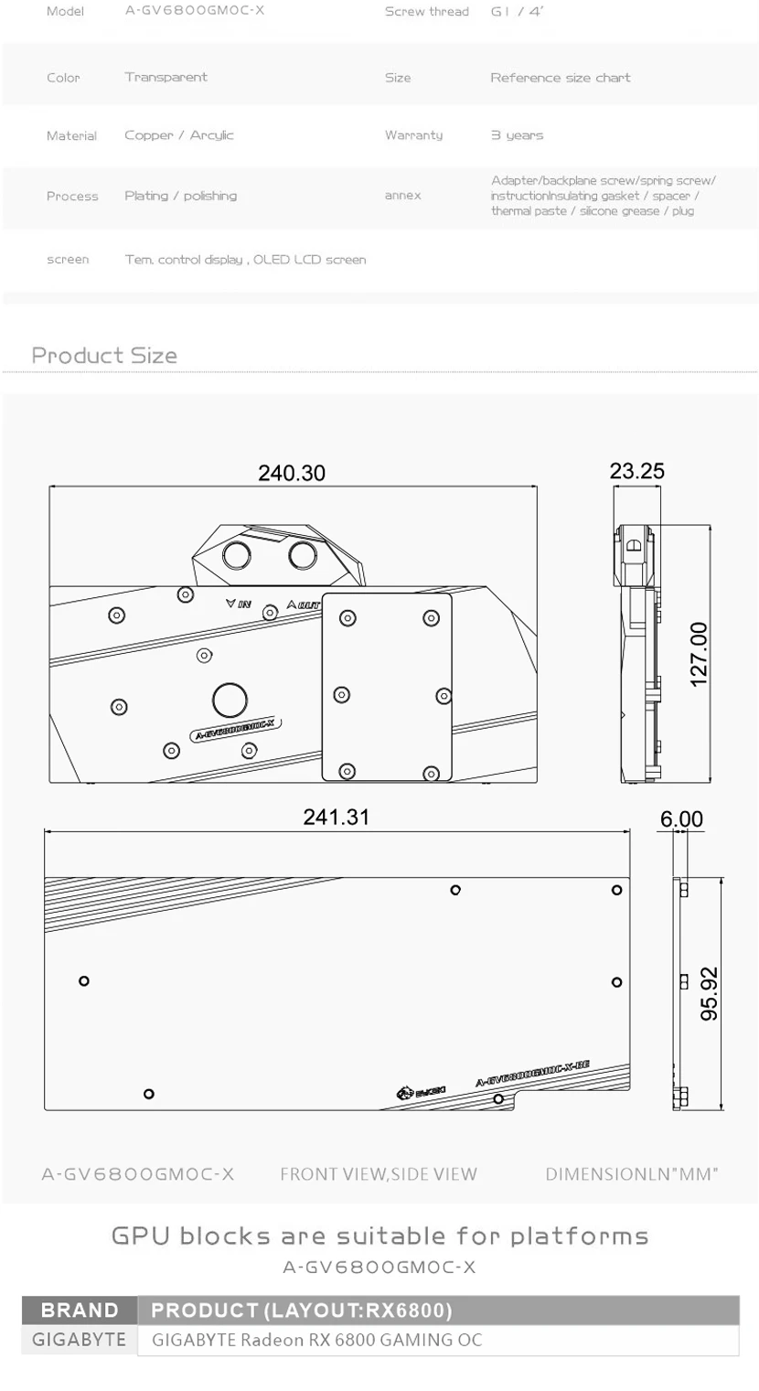 Bykski-bloque de agua GPU para GIGABYTE RX 6800 GAMING OC, refrigeración de tarjeta gráfica, Enfriador de cobre VGA RGB M/B, A-GV6800GMOC-X de sincronización